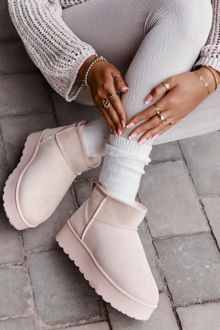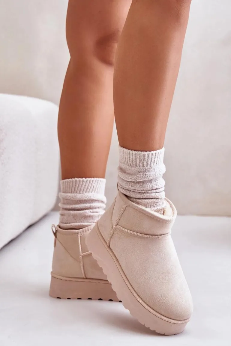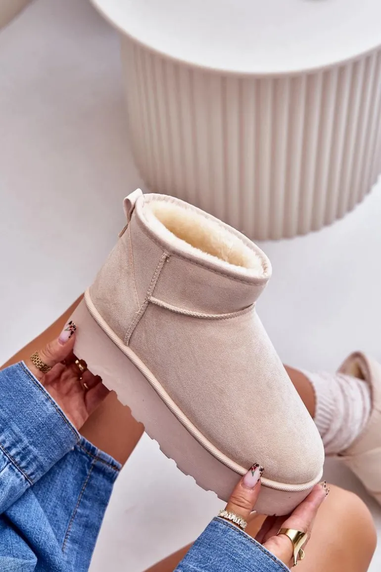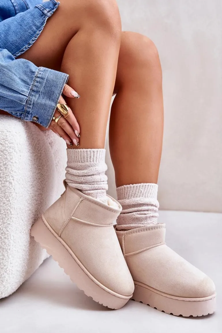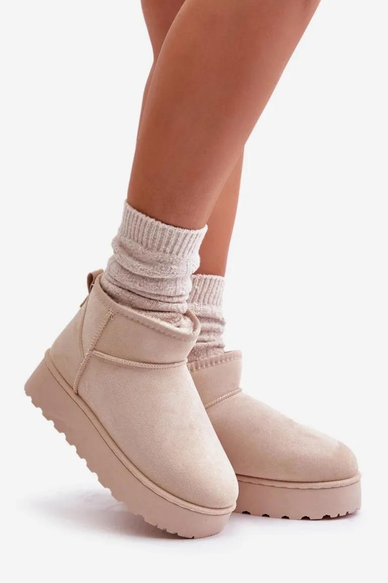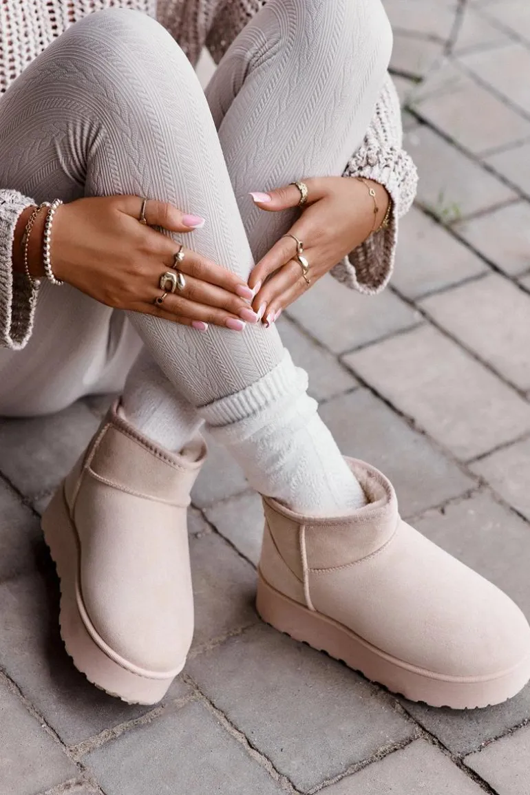 Śniegowce Damskie Na Platformie Ocieplane Futerkiem Jasnobeżowe Xamella