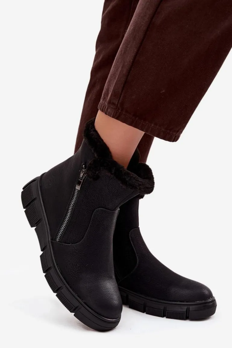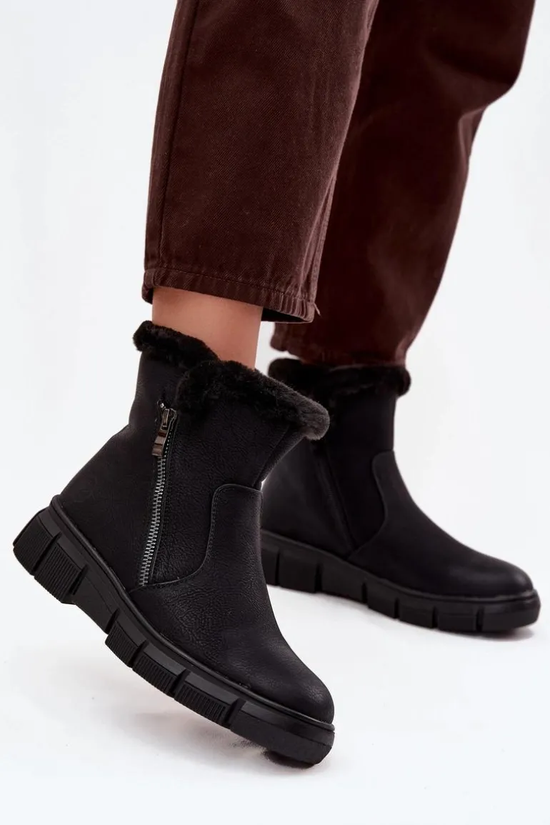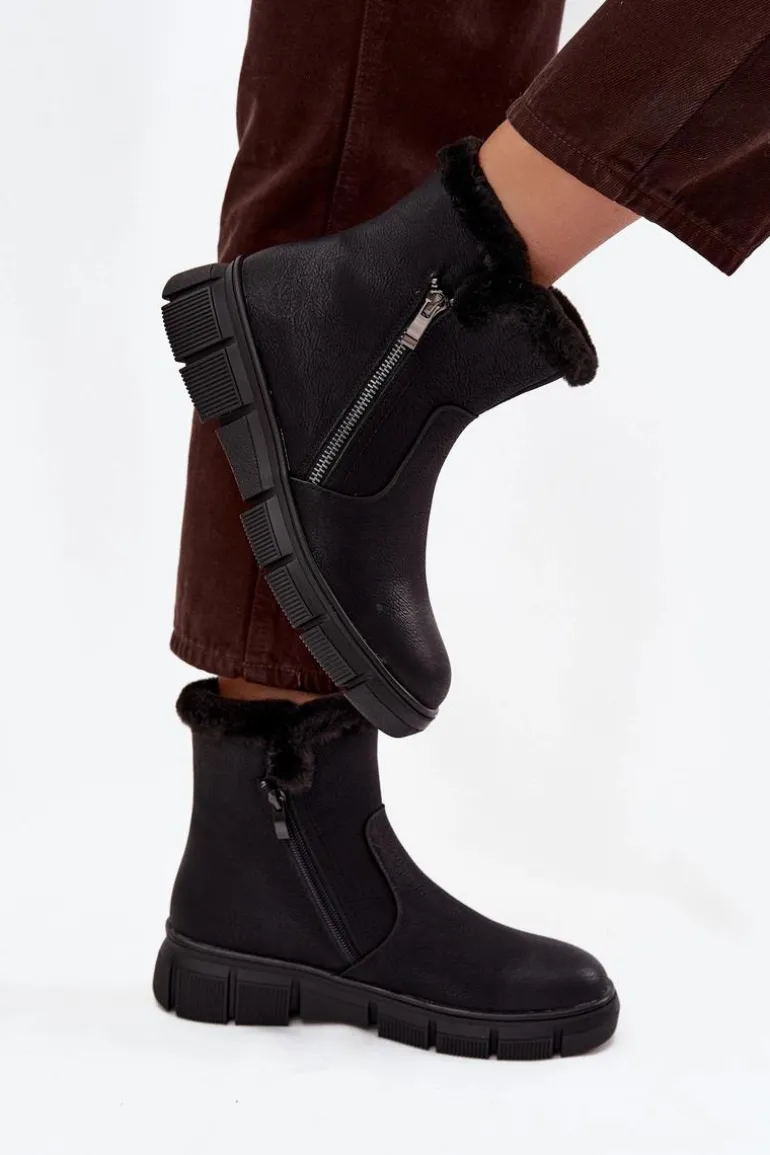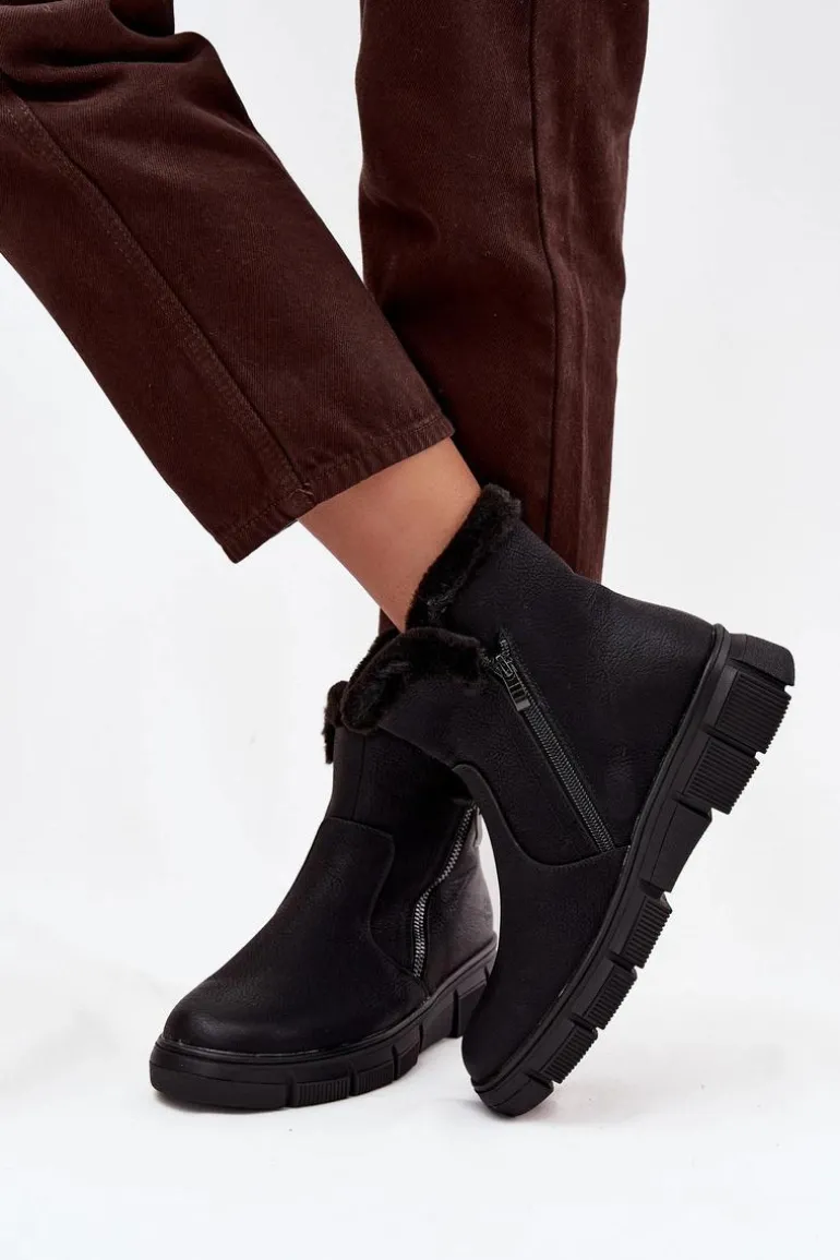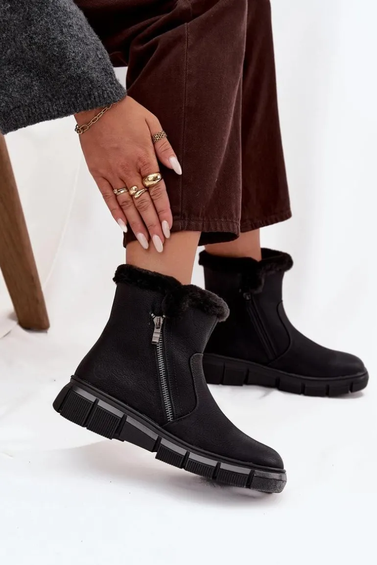 Śniegowce damskie wykonane z eko skóry to idealna propozycja na zimowe dni, łącząca styl z funkcjonalnością. Model osadzony na platformie zapewnia stabilność i wygodę podczas chodzenia, jednocześnie skutecznie izolując od chłodu. Buty posiadają dwa zamki po bokach, które ułatwiają zakładanie i zdejmowanie. Wnętrze oraz górna część cholewki zostały ocieplone miękkim futerkiem, gwarantując ciepło i przytulny komfort nawet w mroźne dni. Podeszwa z gumowego tworzywa zapewnia dobrą przyczepność na różnych nawierzchniach. To stylowe i praktyczne śniegowce, które doskonale sprawdzą się podczas zimowych spacerów i codziennego użytkowania. Przy wyborze rozmiaru prosimy sugerować się tabelą rozmiarów.