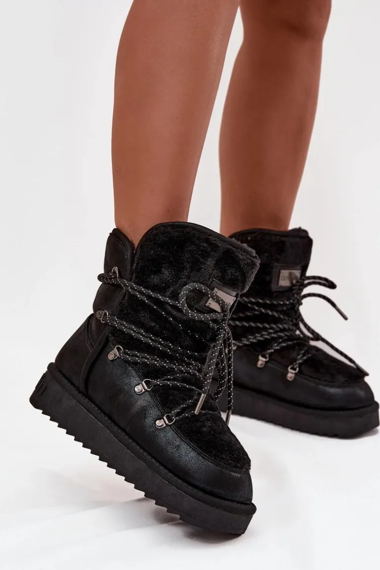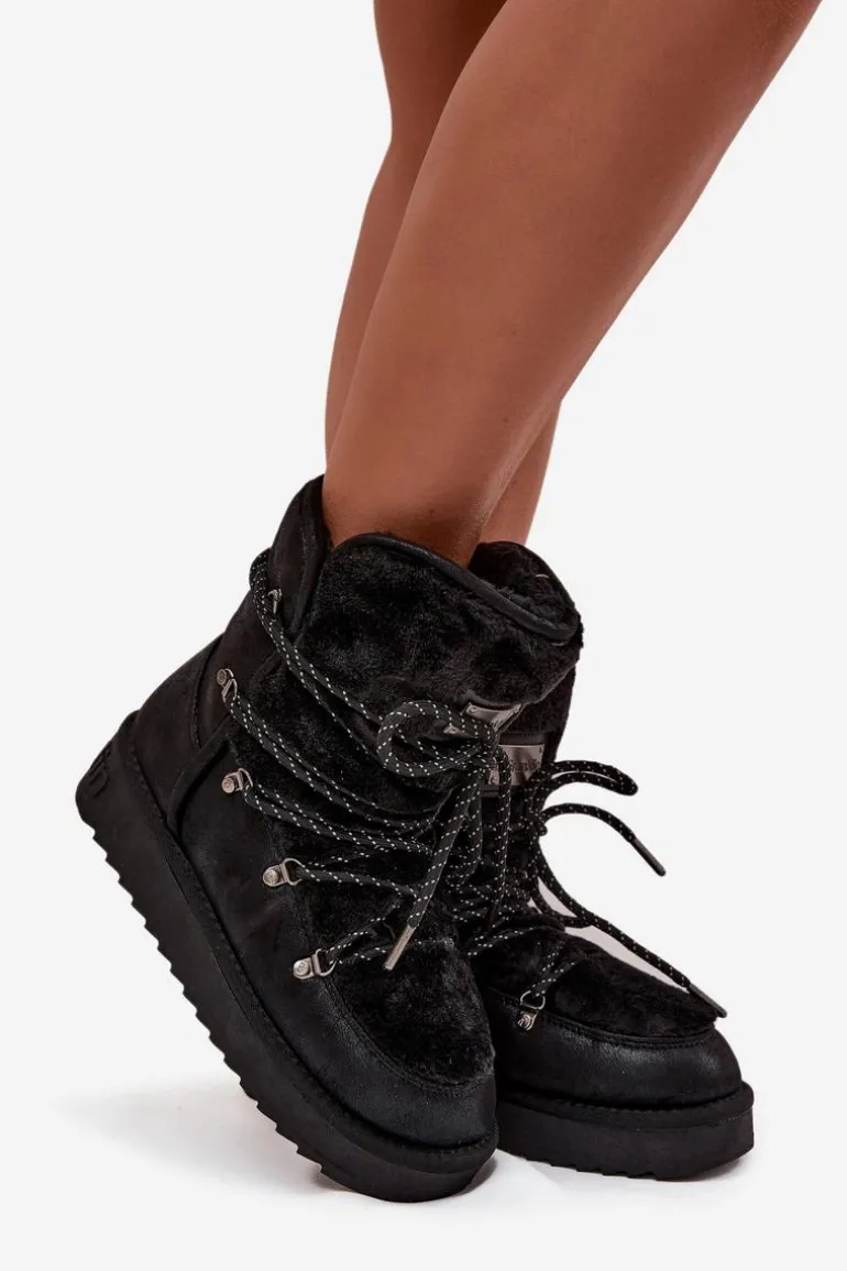 Śniegowce Damskie Na Platformie Z Futerkiem D.Franklin DFSH37005 Czarne