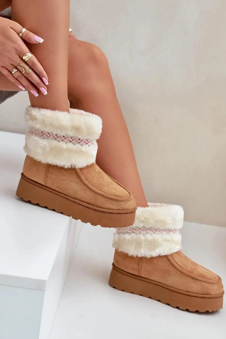 Śniegowce z eko zamszu na platformie to stylowy i funkcjonalny wybór na zimę. Cholewka ozdobiona futerkiem oraz modnym wzorem dodaje im charakteru, a podwyższona platforma izoluje od chłodnego podłoża, zapewniając ciepło i wygodę. Idealne na mroźne dni, łączą komfort z modnym designem. Model ten występuje również w rozmiarach dziecięcych! Stwórz komplet mama + dziecko! Przy wyborze rozmiaru prosimy sugerować się tabelą rozmiarów.