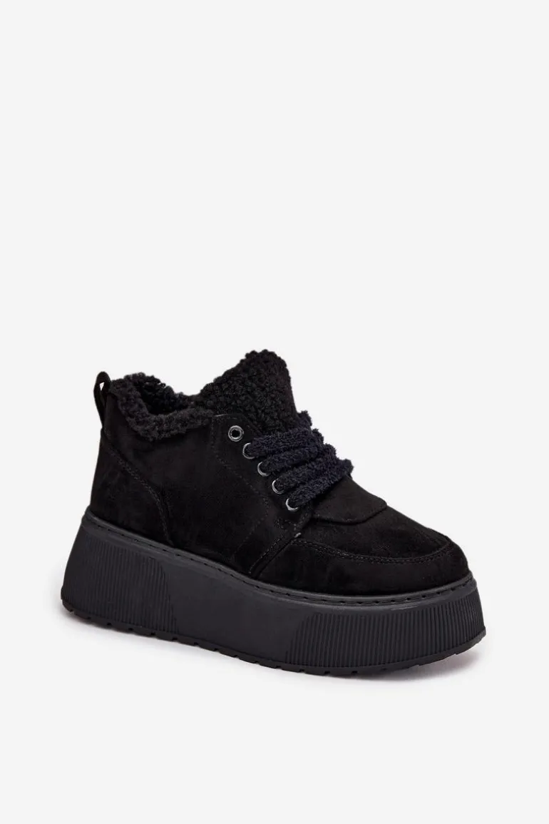 Śniegowce Damskie Na Platformie Z Futerkiem Typu Baranek Czarne Luma