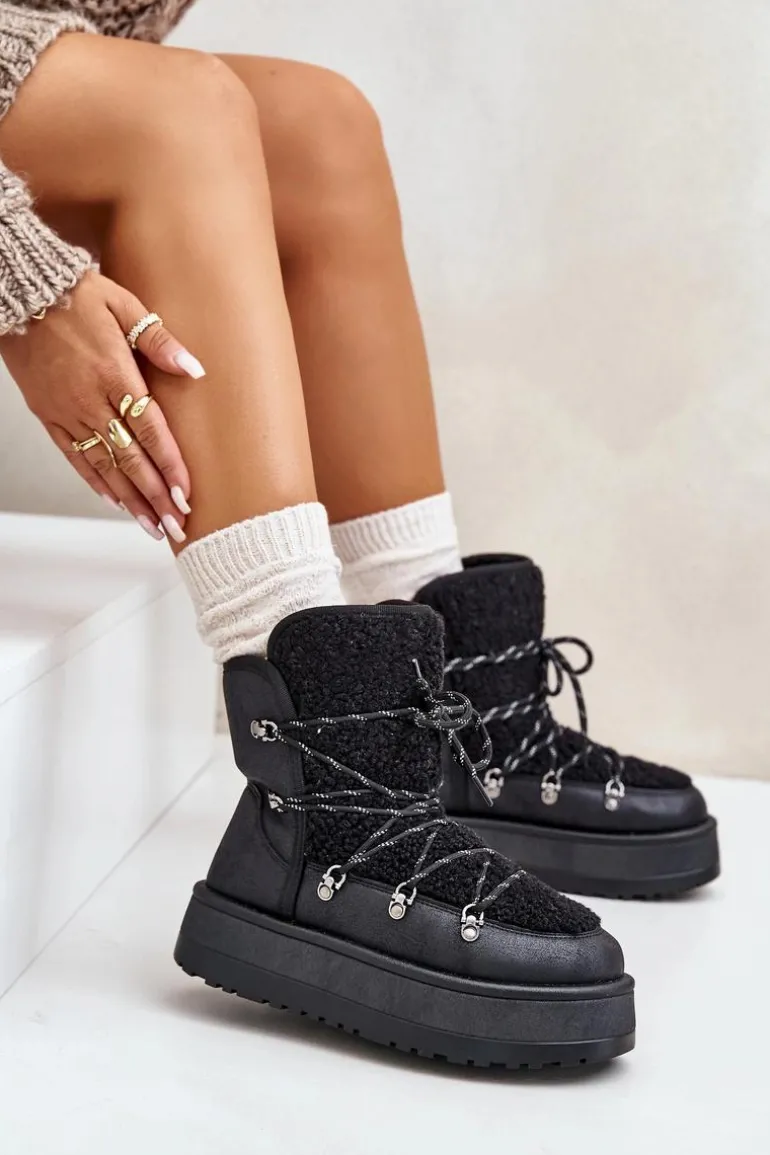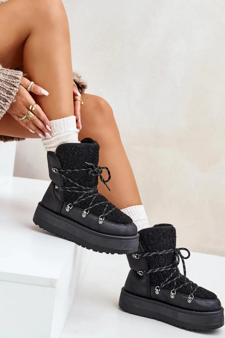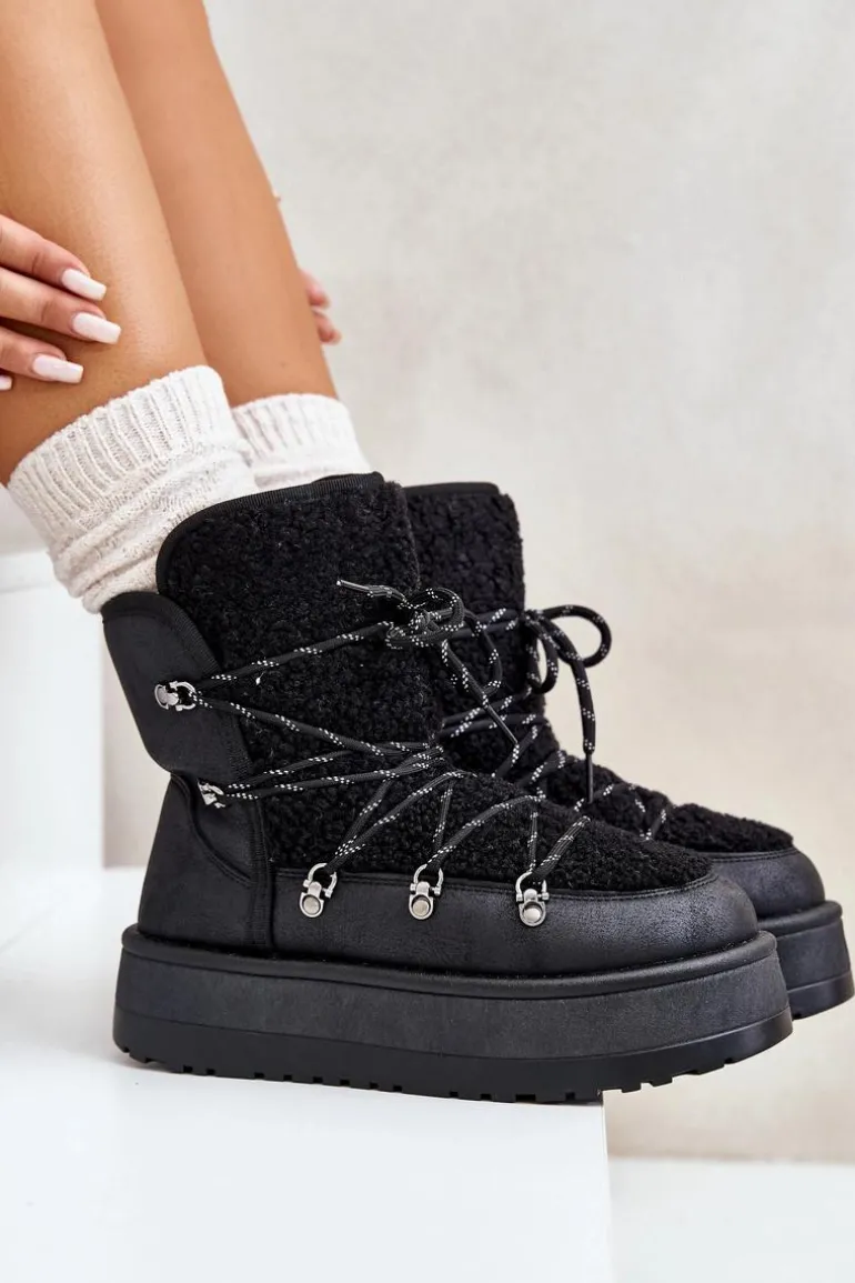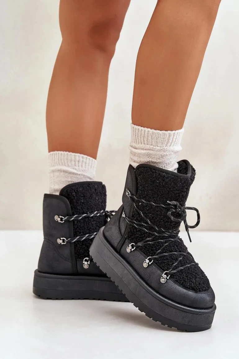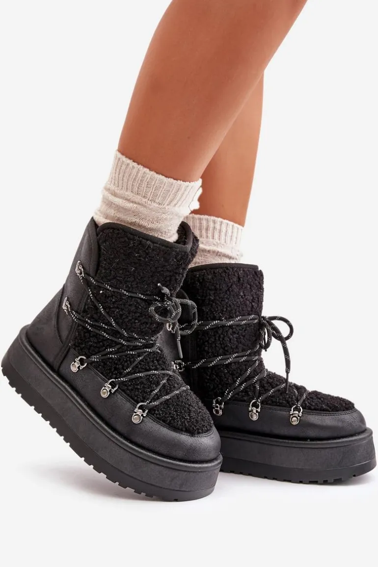 Śniegowce Damskie Na Platformie Z Wiązaniem Czarne Riaviana