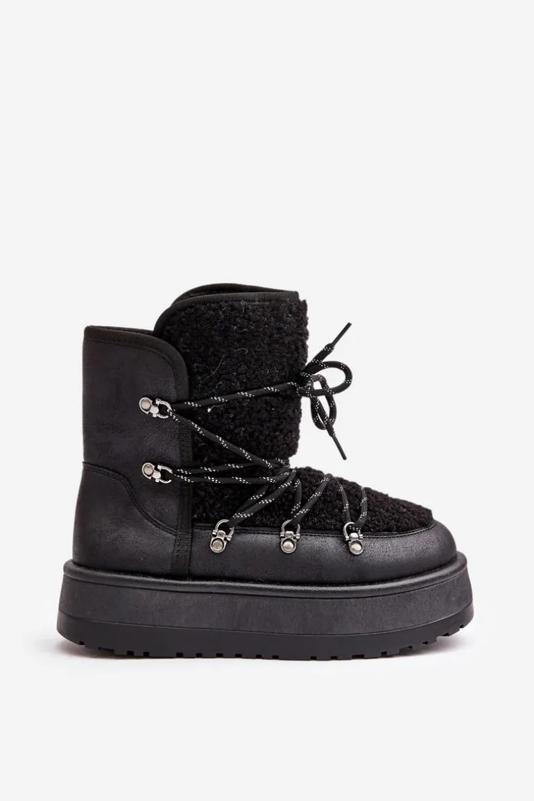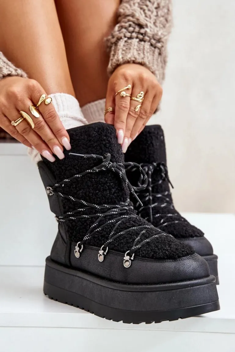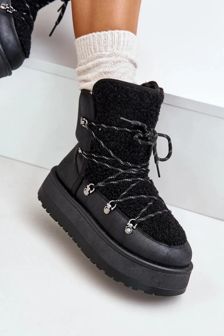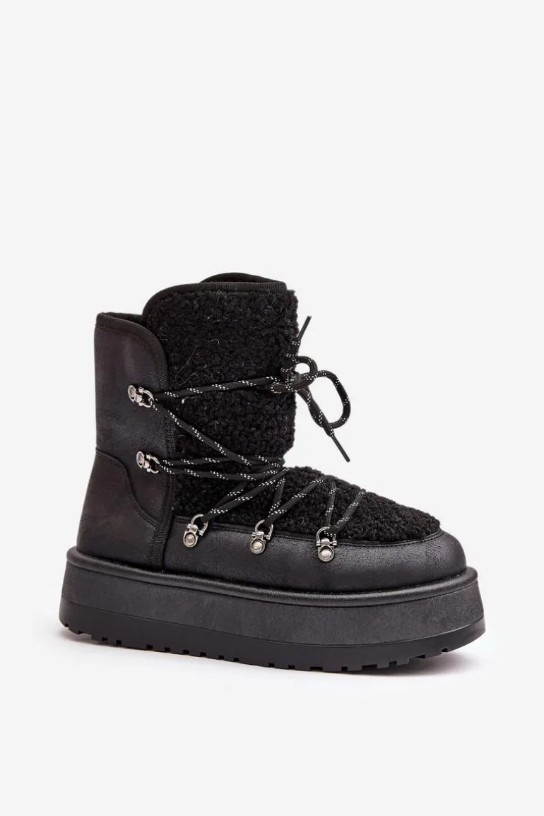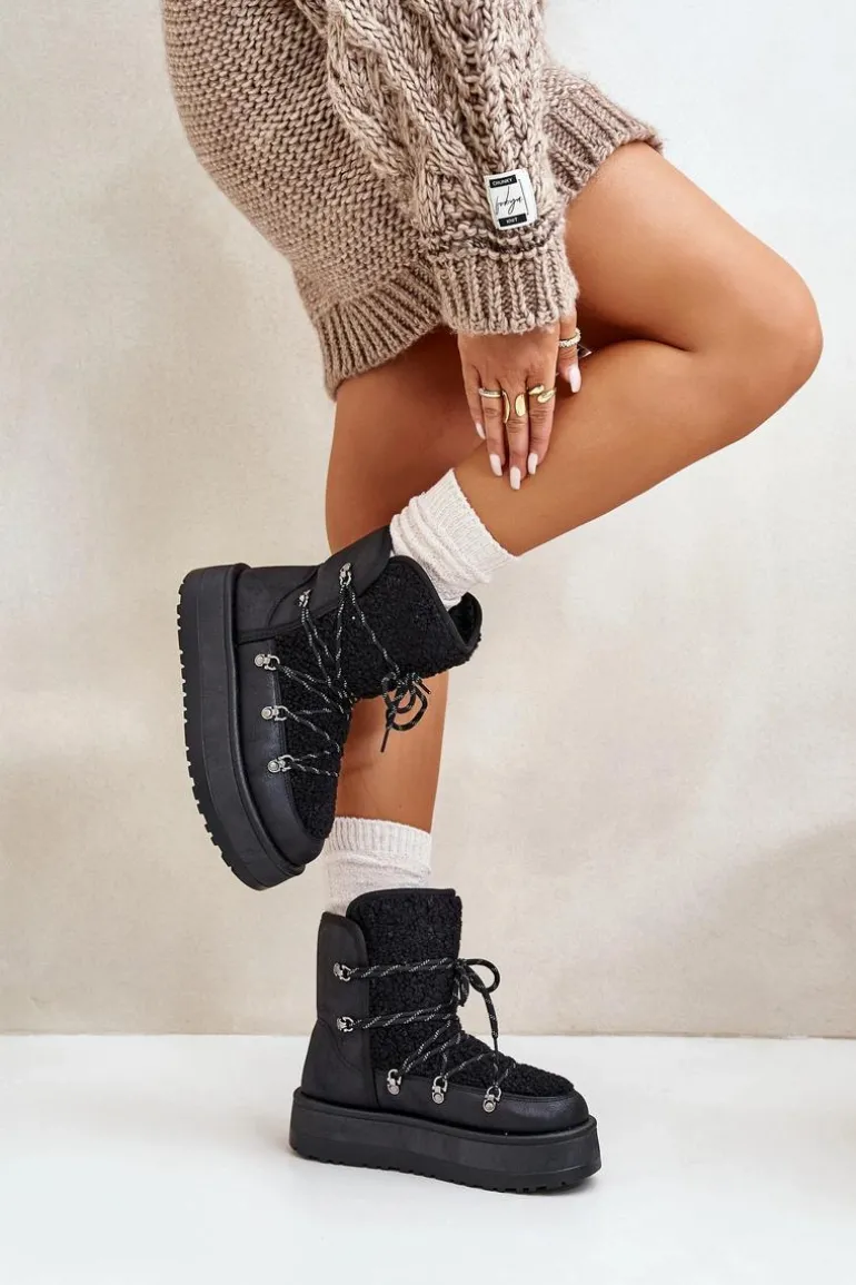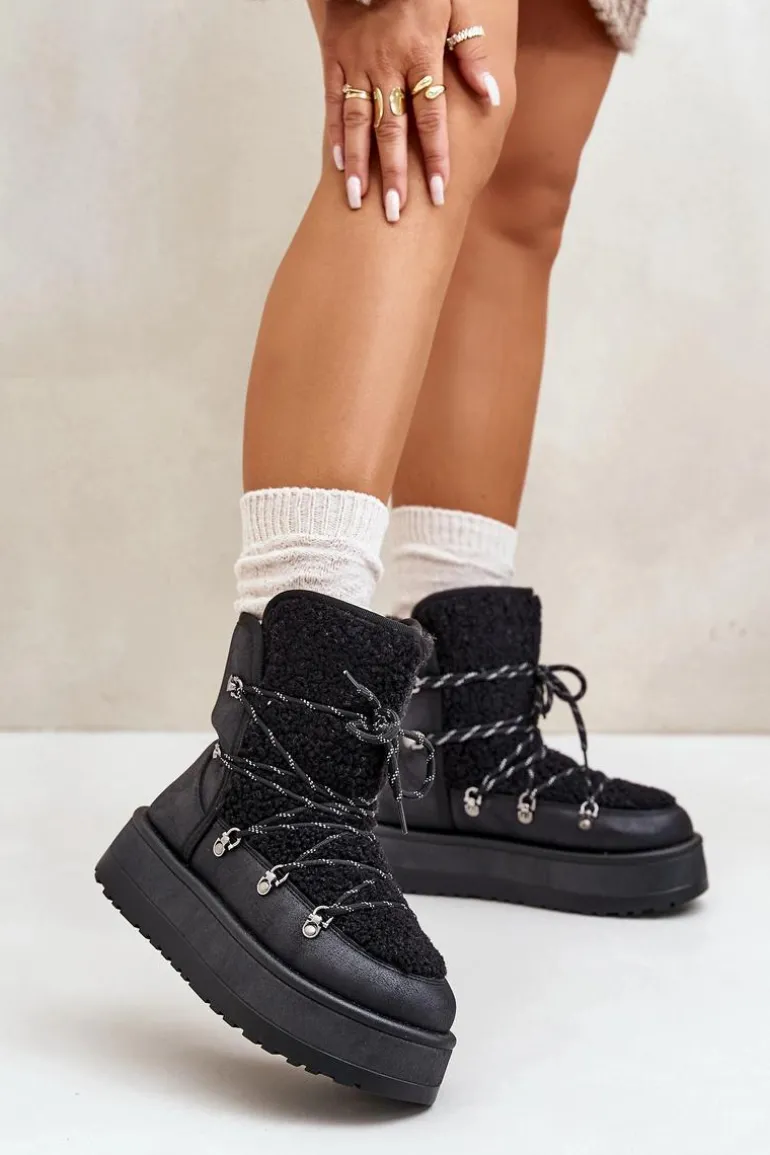 Śniegowce Damskie Na Platformie Z Wiązaniem Czarne Riaviana