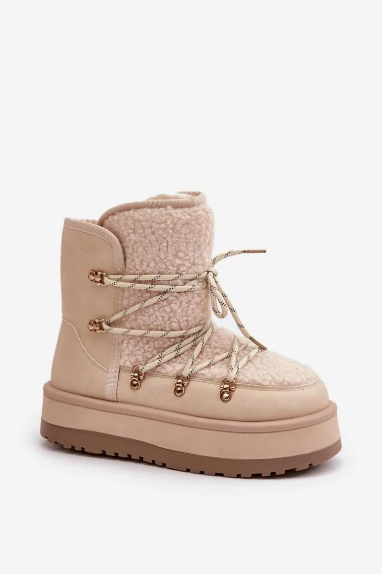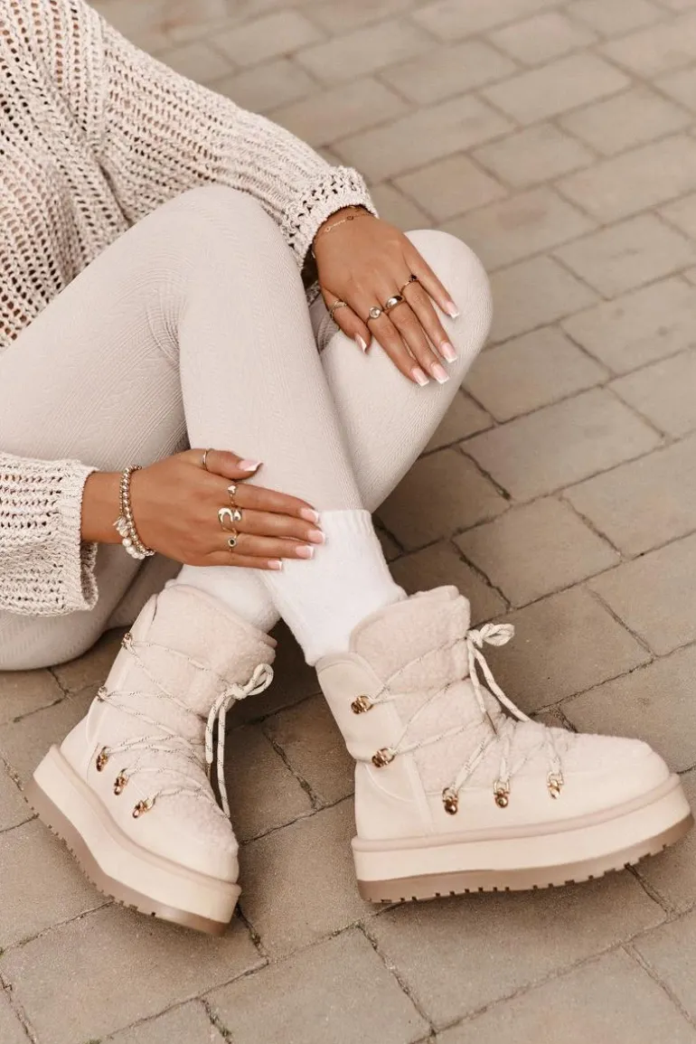 Damskie śniegowce na masywnej platformie, która doskonale odizoluje od zimnego podłoża. Środek ocieplony grubym futerkiem, co zapewni ciepło w mroźne dni. Cholewka z wiązaniem i syntetycznym kożuszkiem. Koniecznie powinnaś je mieć w swojej zimowej garderobie! Przy wyborze rozmiaru prosimy sugerować się tabelą rozmiarów.