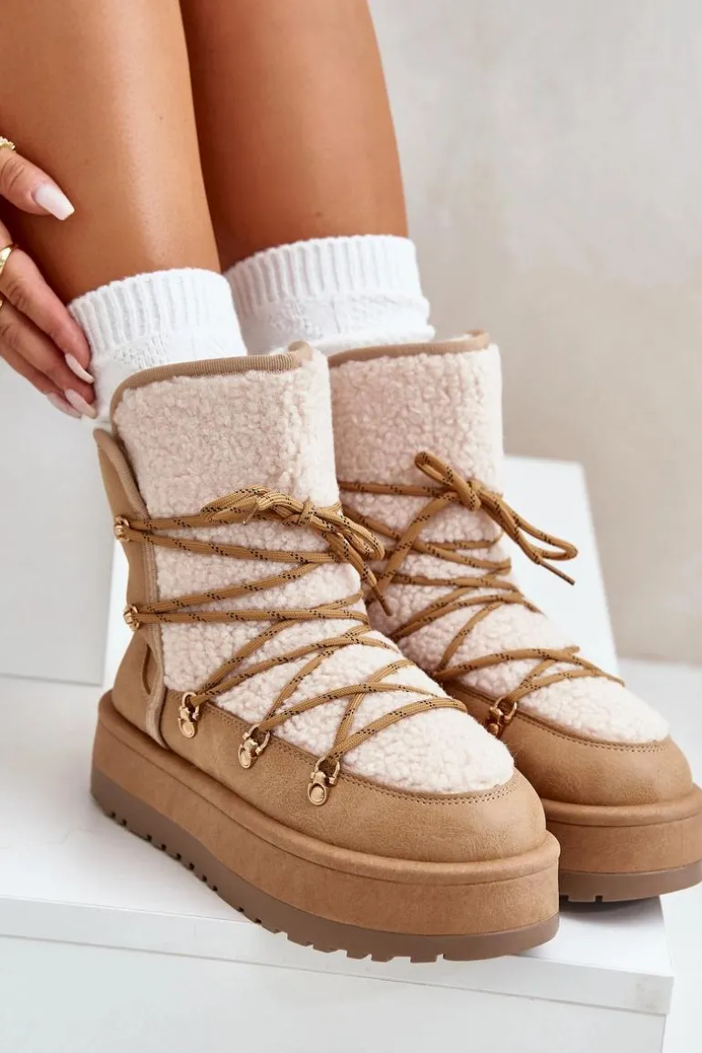 Śniegowce Damskie Na Platformie Z Wiązaniem Jasnobrązowe Riaviana