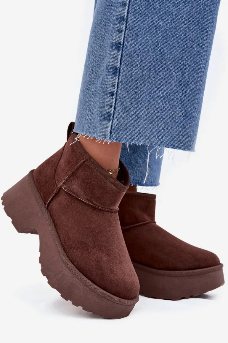 Śniegowce damskie z eko zamszu to idealny wybór na zimowe dni. Osadzone na platformie i obcasie, zapewniają wygodę i stabilność, jednocześnie dodając kilku centymetrów wysokości. Wsuwany model gwarantuje łatwość zakładania, a ocieplenie futerkiem zapewnia ciepło nawet w najchłodniejsze dni. Doskonałe na codzienne wyjścia. Przy wyborze rozmiaru prosimy sugerować się tabelą rozmiarów.