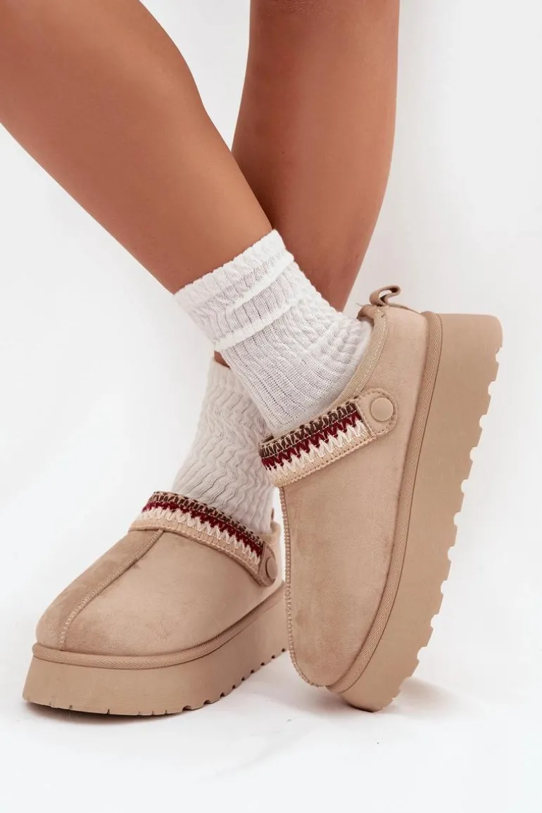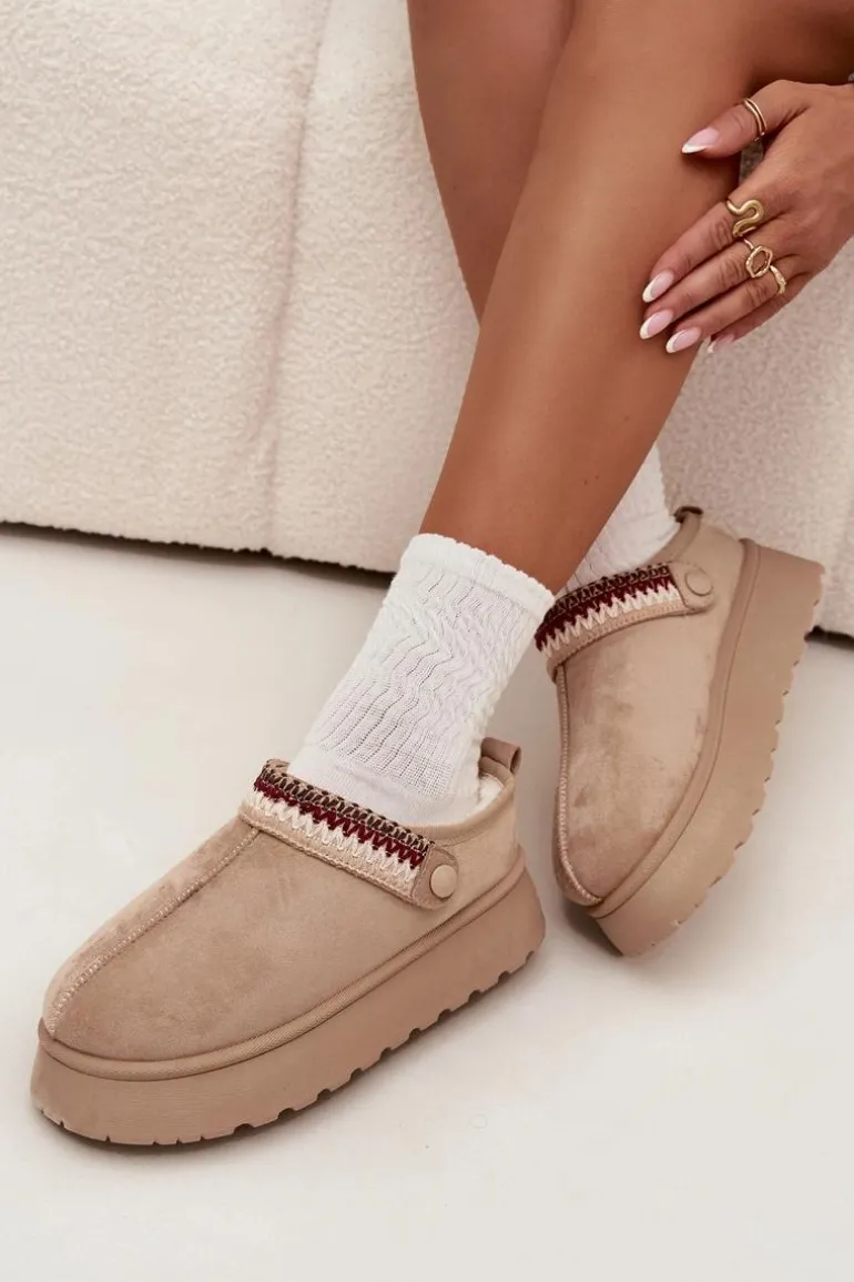 Niskie śniegowce damskie z eko zamszu to idealne połączenie stylu, funkcjonalności i komfortu na zimowe dni. Model osadzony na stabilnej platformie zapewnia pewny krok i dodatkową izolację od zimnego podłoża, a miękkie futerko wewnątrz buta gwarantuje przyjemne ciepło nawet w najchłodniejsze dni. Charakterystycznym elementem jest ruchomy pasek z haftem, który można nosić z tyłu, aby lepiej ustabilizować stopę lub z przodu, nadając śniegowcom nieco inny, modny wygląd. Niski fason sprawia, że buty są praktyczne i wygodne, a jednocześnie nowoczesne – dostępne w kilku wariantach kolorystycznych, dzięki czemu łatwo dopasować je do zimowych stylizacji, od casualowych spacerów po miejskie wyjścia. Przy wyborze rozmiaru prosimy kierować tabelą rozmiarów.