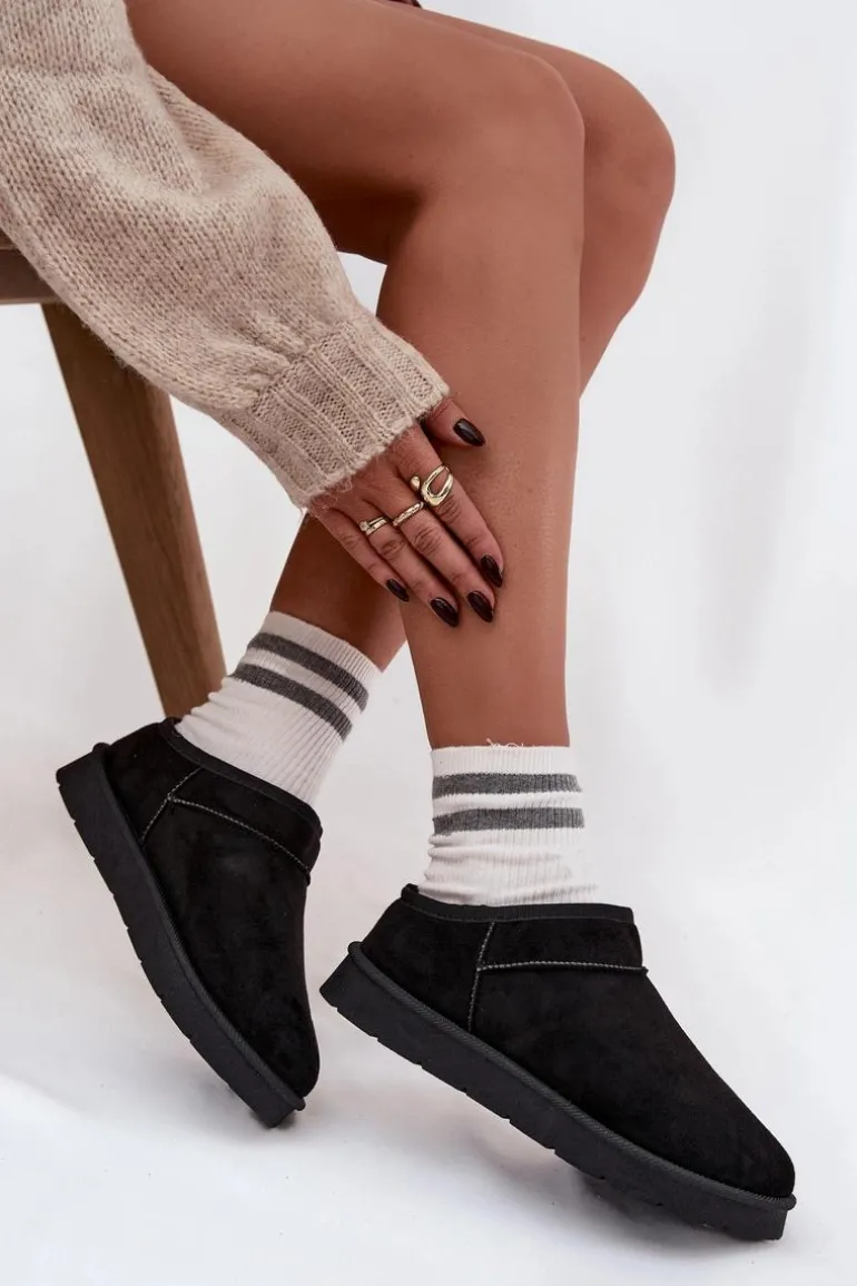 Śniegowce damskie wykonane z eko zamszu to praktyczna i stylowa propozycja na zimowe dni. Model jest niski i wsuwany, dzięki czemu zakładanie i zdejmowanie butów jest wyjątkowo wygodne. Wnętrze zostało ocieplone miękkim futerkiem, które zapewnia ciepło oraz komfort nawet w mroźne dni. To idealne obuwie na codzienne wyjścia – wygodne i uniwersalne, doskonale sprawdzą się podczas spacerów, zakupów czy drogi do pracy. Przy wyborze rozmiaru prosimy kierować tabelą rozmiarów.