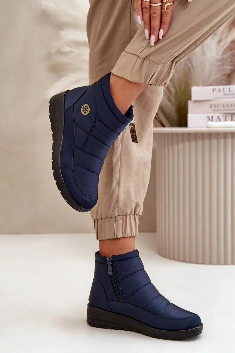Klasyczne śniegowce damskie zostały wykonane z materiałów odpornych na deszcz, mróz i wiatr. Posiadają ocieplenie w postaci grubego futerka. Śniegowce osadzono na platformie. Model ten zapinany jest na suwak z boku cholewki. Dodatkowo zapiętek jest usztywniany. Idealny model na jesienno-zimowy sezon! Przy wyborze rozmiaru prosimy sugerować się tabelą rozmiarów.
