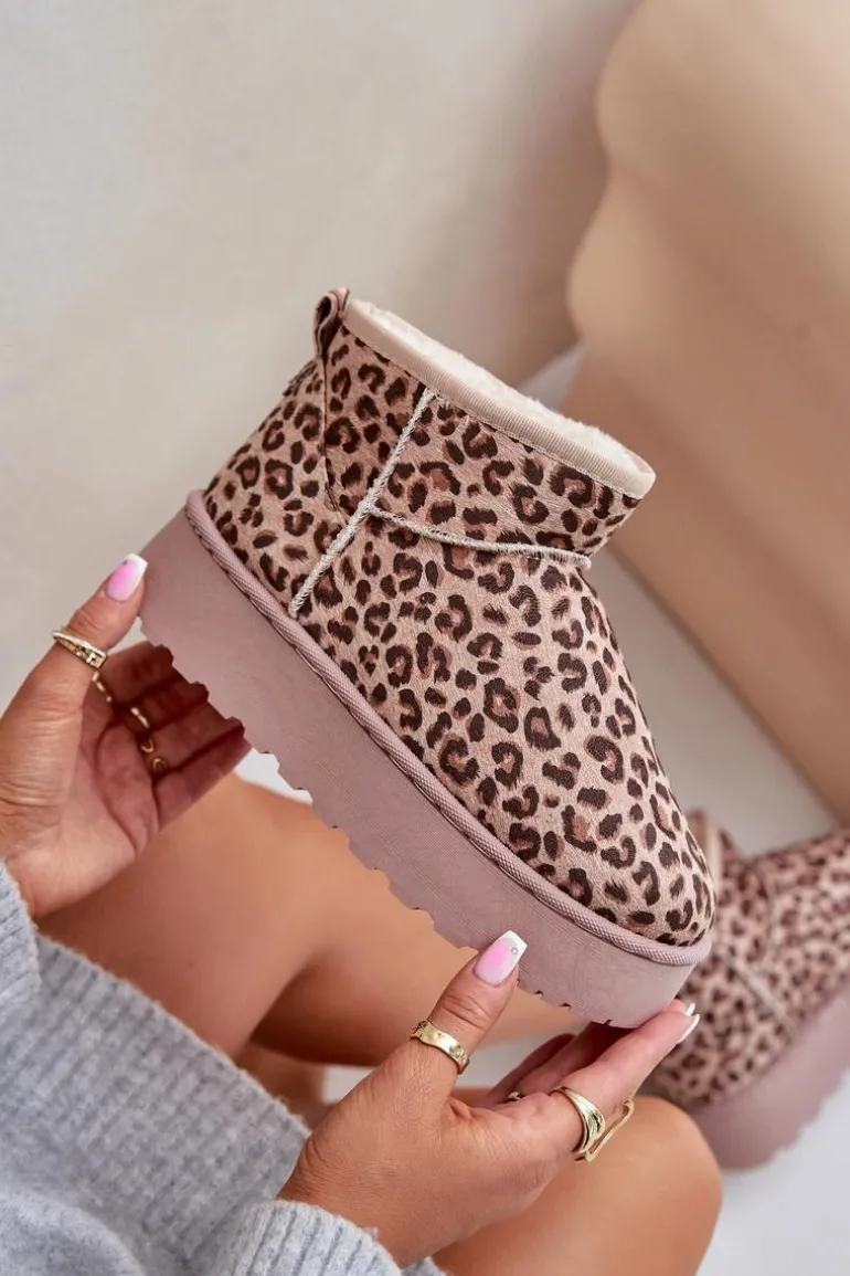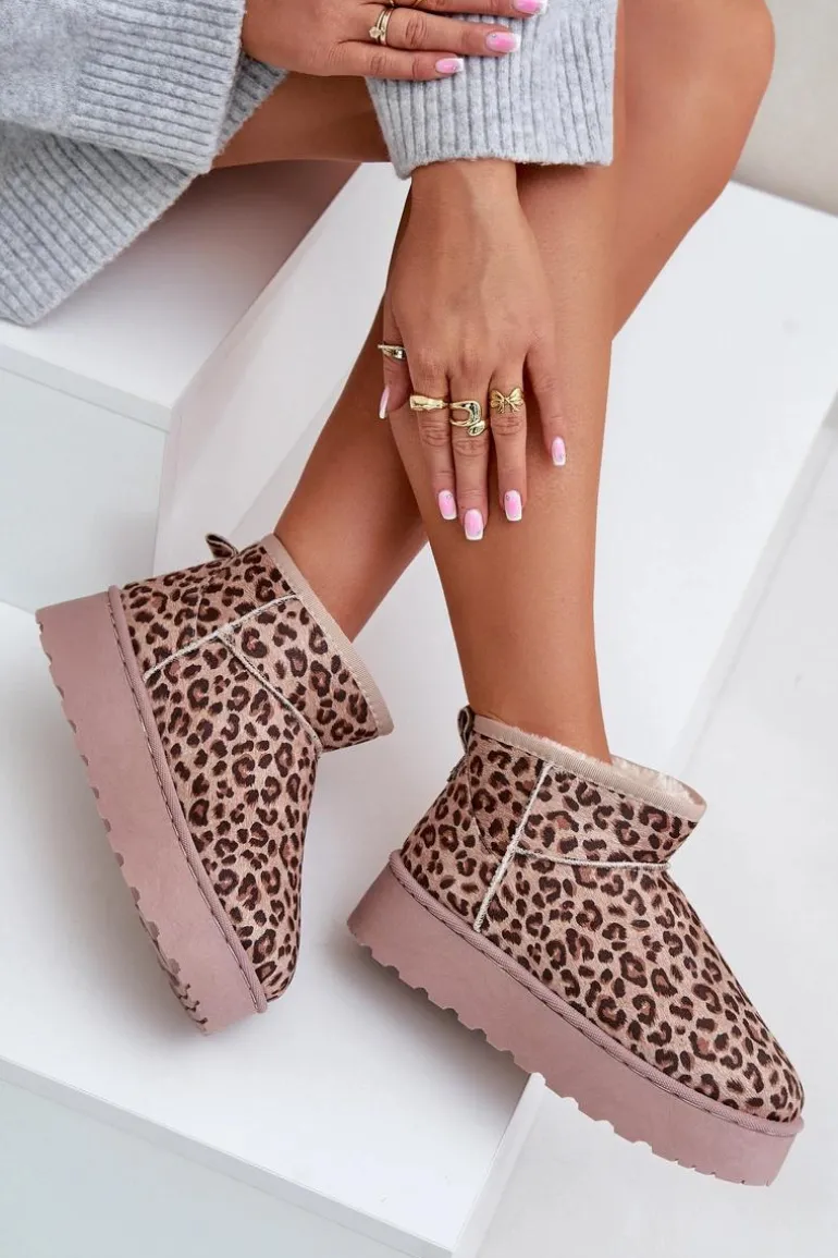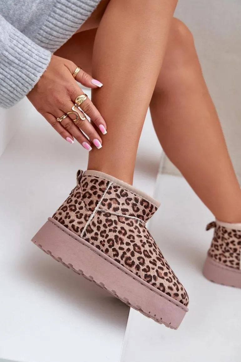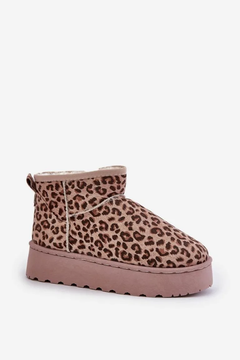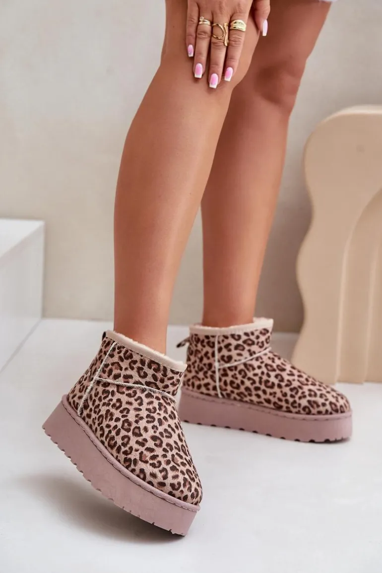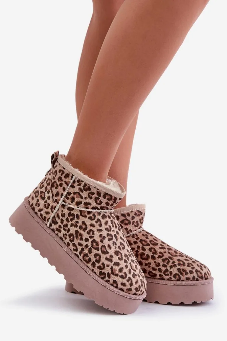 Śniegowce Damskie W Panterkę Na Platformie Ocieplane Futerkiem Brązowe Xamella