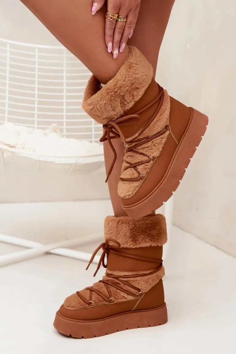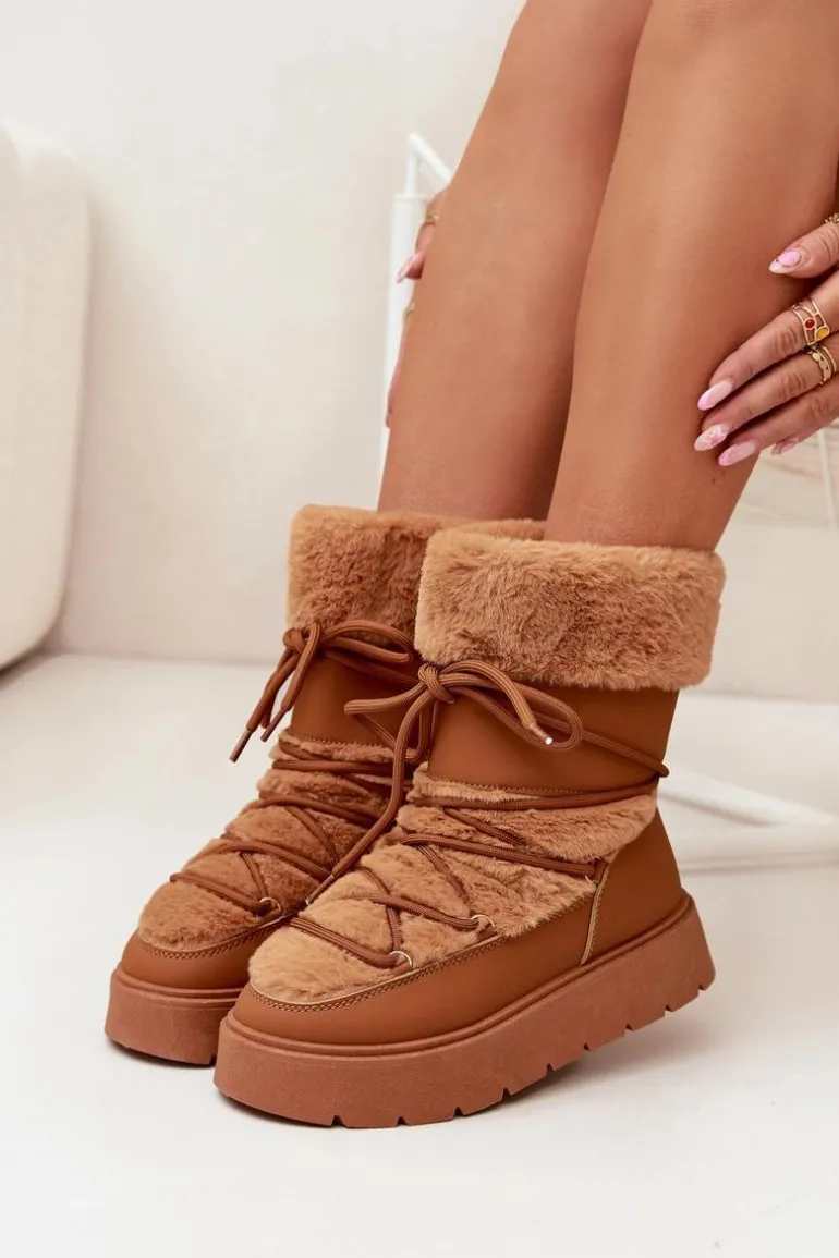 Śniegowce damskie na platformie to połączenie mody i funkcjonalności na zimowe dni. Wykonane z eko skóry. Ciepłe futerko zarówno na zewnątrz, jak i wewnątrz butów, gwarantuje komfort i ciepło nawet w najchłodniejsze dni. Wiązanie pozwala na lepsze dopasowanie. Idealne na zimowe wypady, łączą stylowy wygląd z wygodą i ochroną przed zimnem. Przy wyborze rozmiaru prosimy sugerować się tabelą rozmiarów.