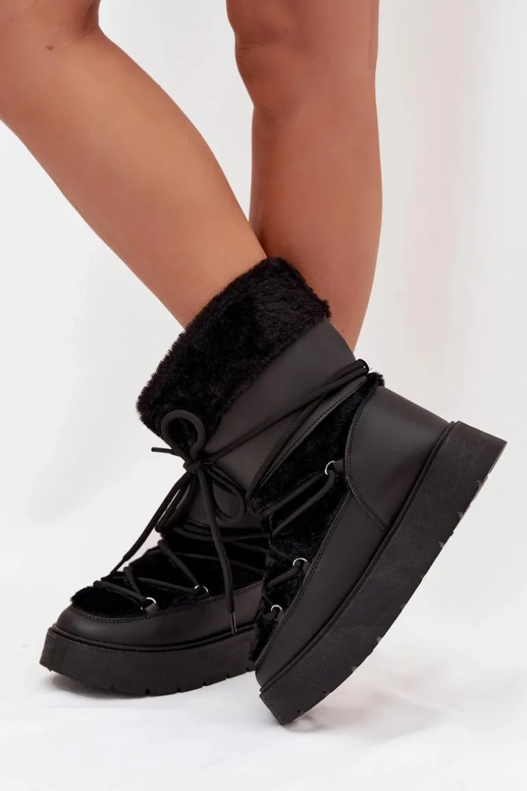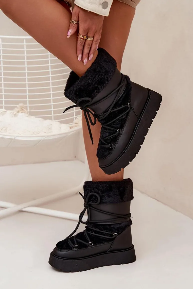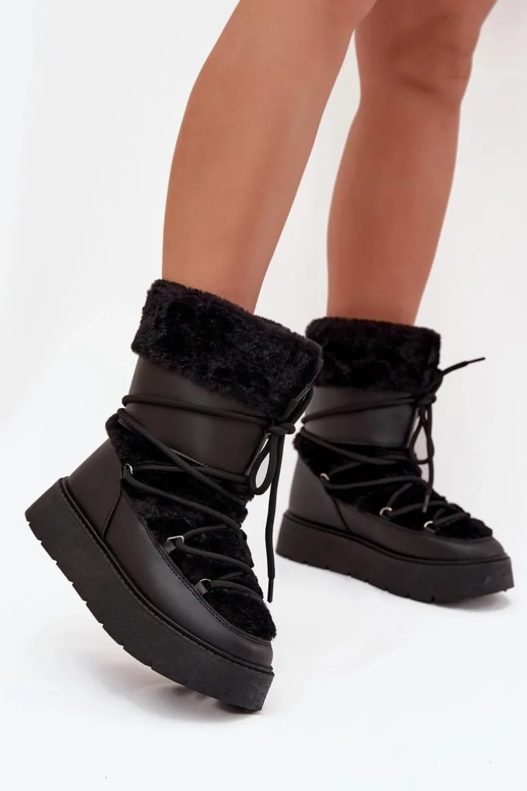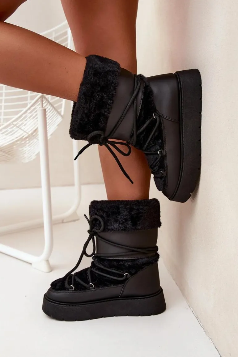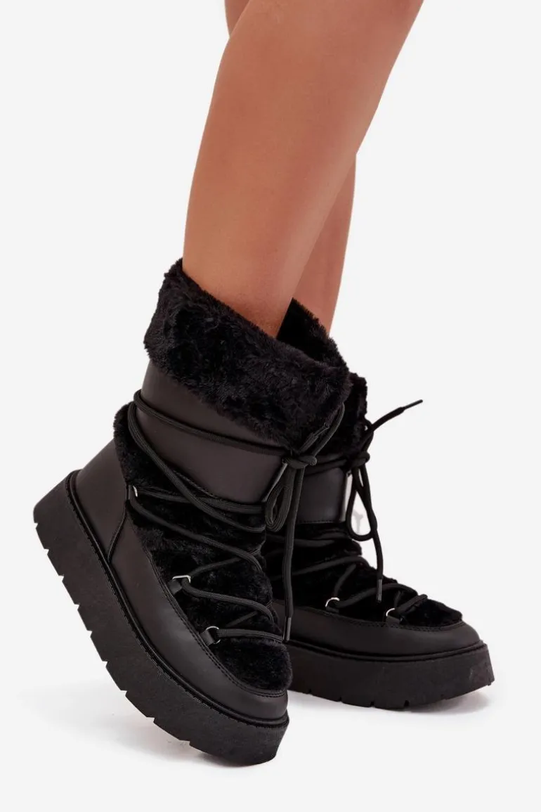 Śniegowce damskie na platformie to połączenie mody i funkcjonalności na zimowe dni. Wykonane z eko skóry. Ciepłe futerko zarówno na zewnątrz, jak i wewnątrz butów, gwarantuje komfort i ciepło nawet w najchłodniejsze dni. Wiązanie pozwala na lepsze dopasowanie. Idealne na zimowe wypady, łączą stylowy wygląd z wygodą i ochroną przed zimnem. Przy wyborze rozmiaru prosimy sugerować się tabelą rozmiarów.