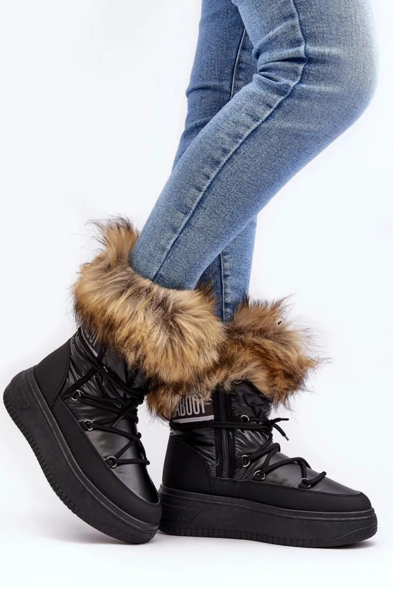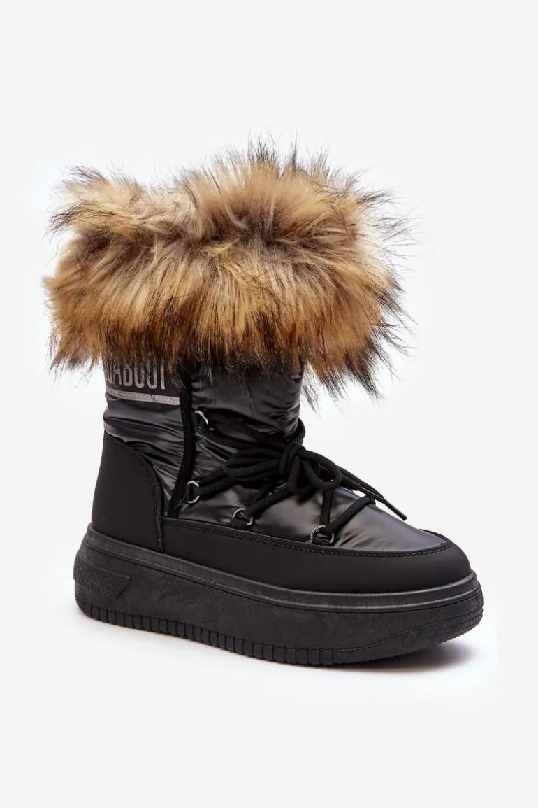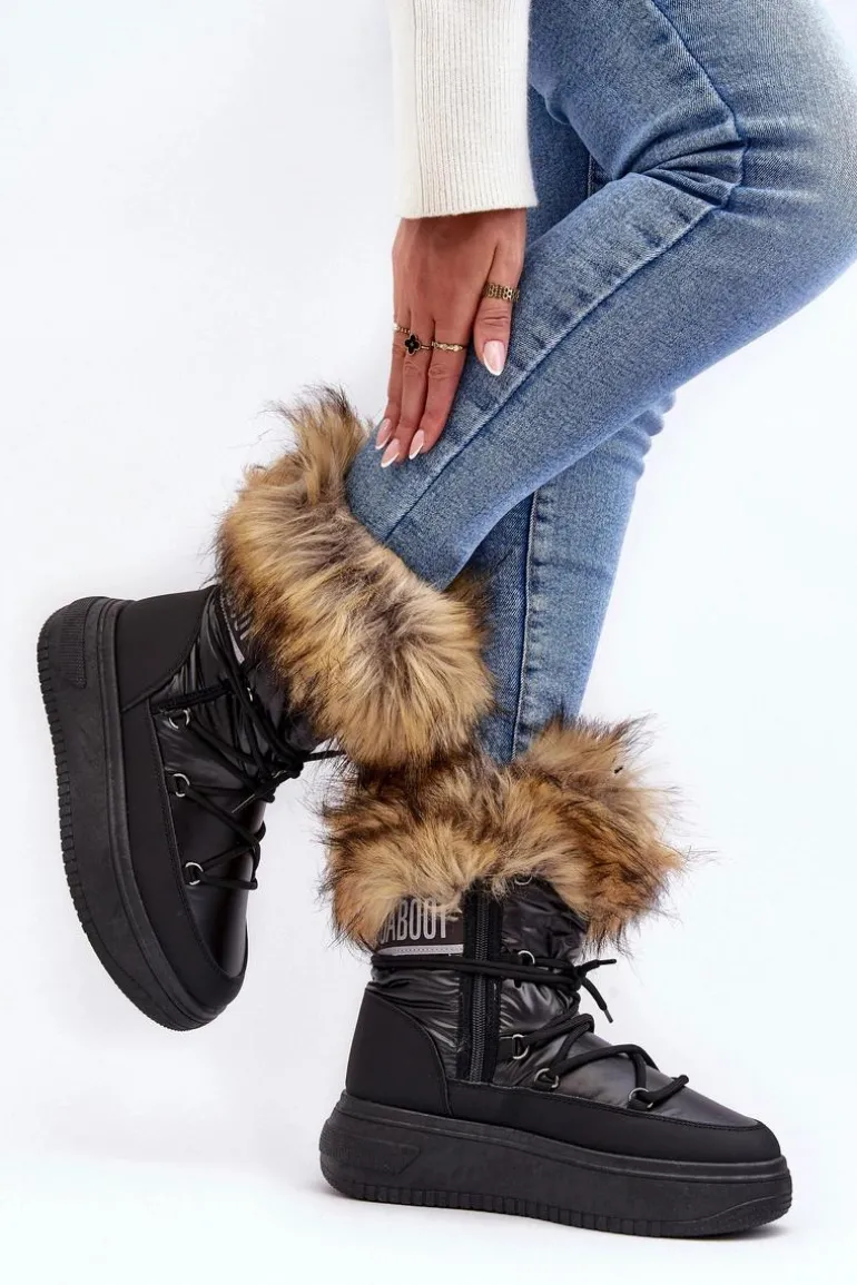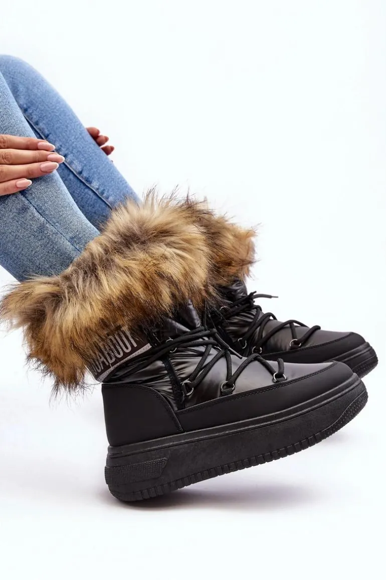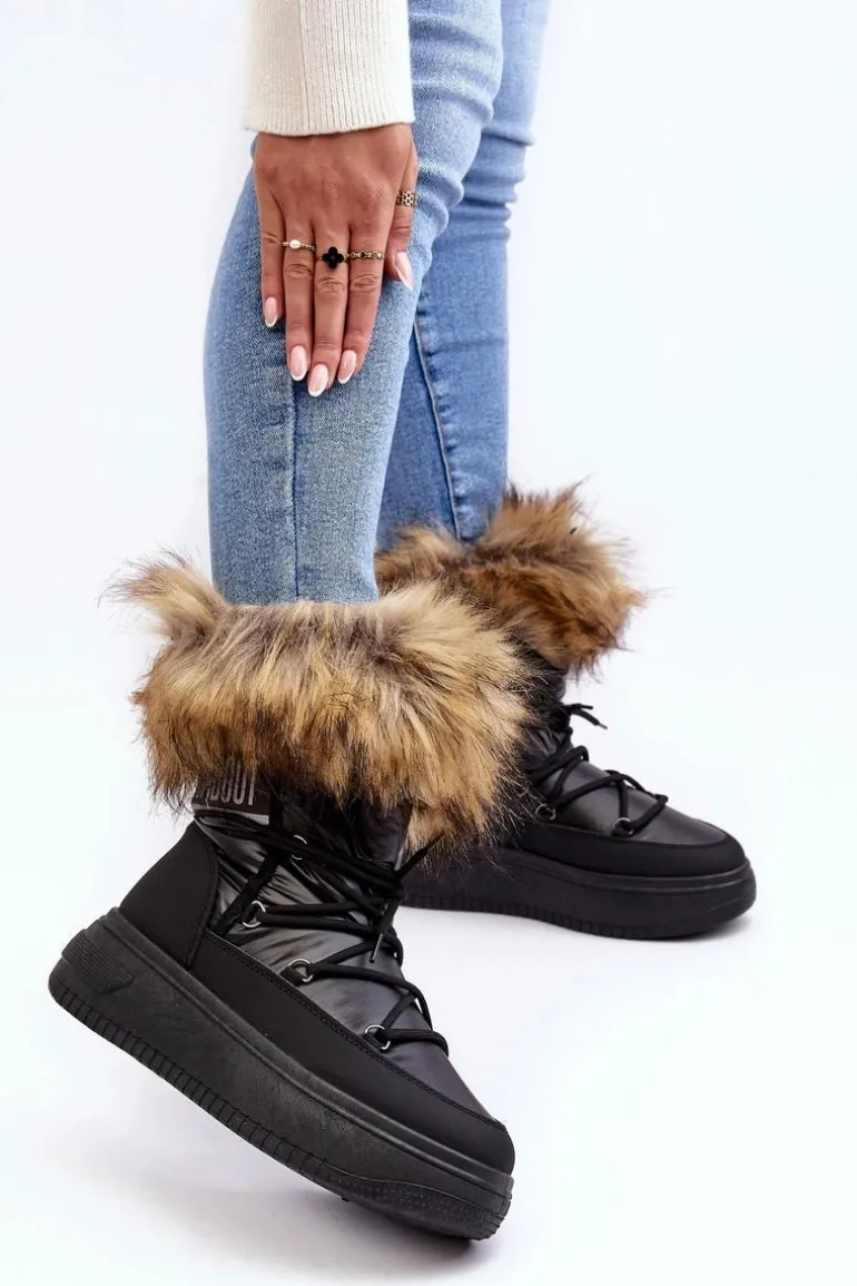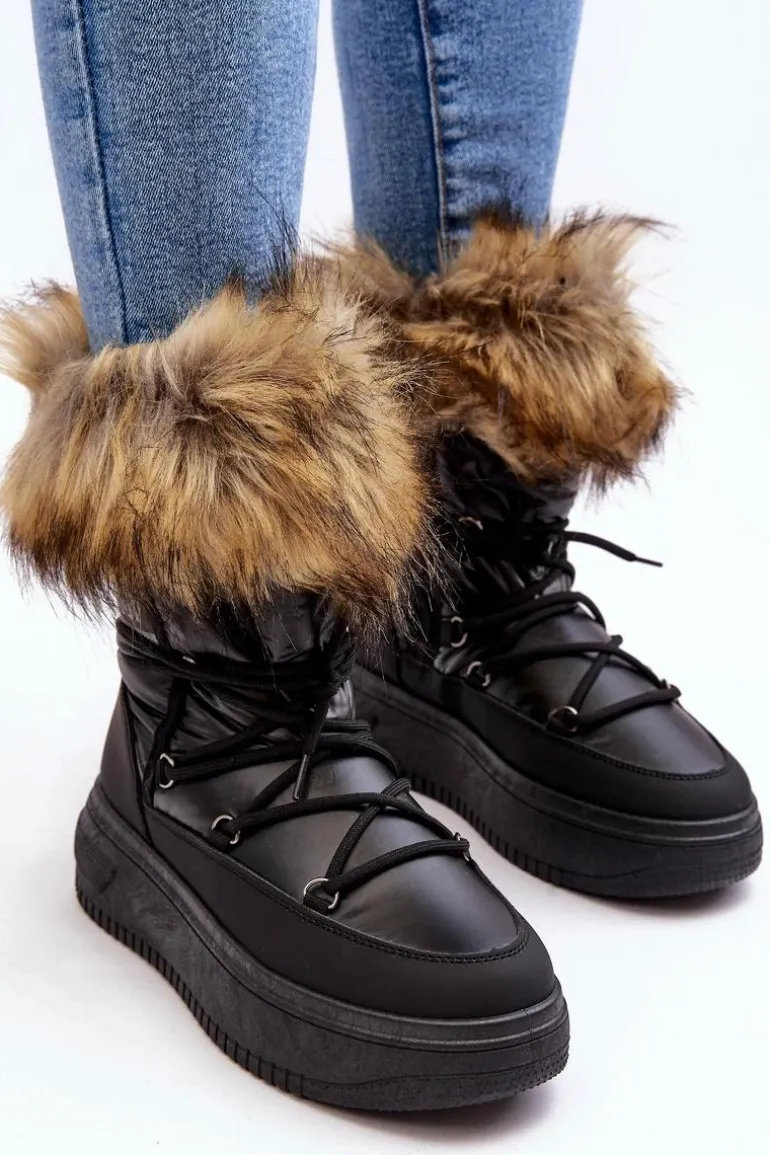 Śniegowce Damskie Z Futerkiem Na Platformie Czarne Nabilla