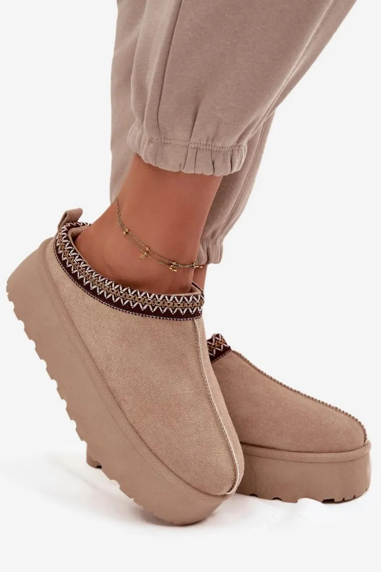 Śniegowce Damskie Z Ozdobnym Haftem Beżowe Jenira