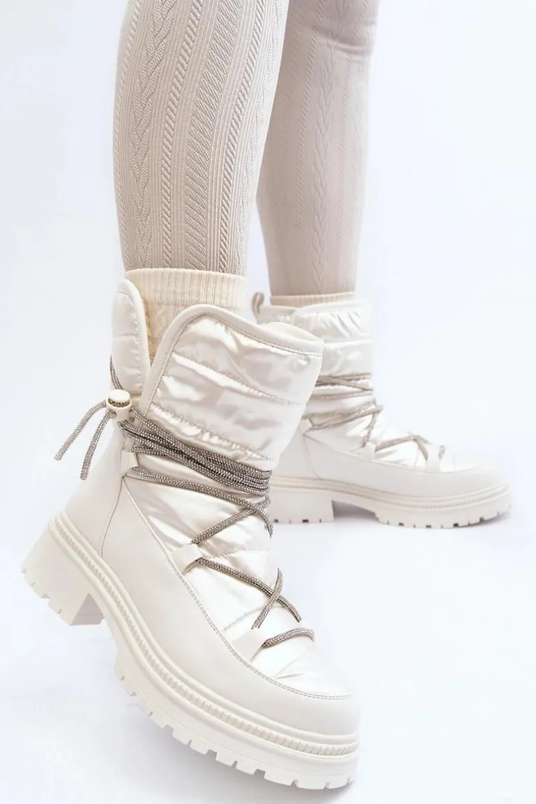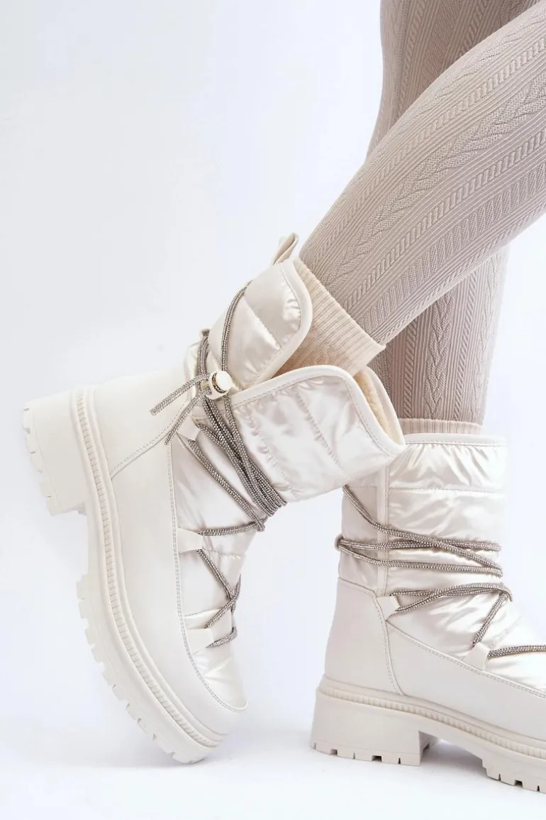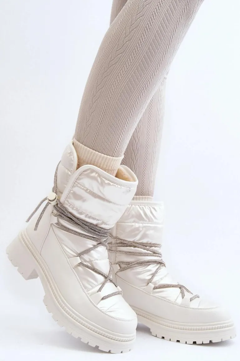 Śniegowce damskie wykonane z materiałów, które skutecznie chronią przed zimnem. Osadzone na grubej podeszwie i płaskim obcasie. Cholewka ozdobiona błyszczącym wiązaniem. Model wsuwany. Noski zaokrąglone. Środek ocieplony grubym futerkiem. Dodatkowo zapiętek jest usztywniony. Koniecznie powinnaś je mieć! Przy wyborze rozmiaru prosimy sugerować się tabelą rozmiarów.