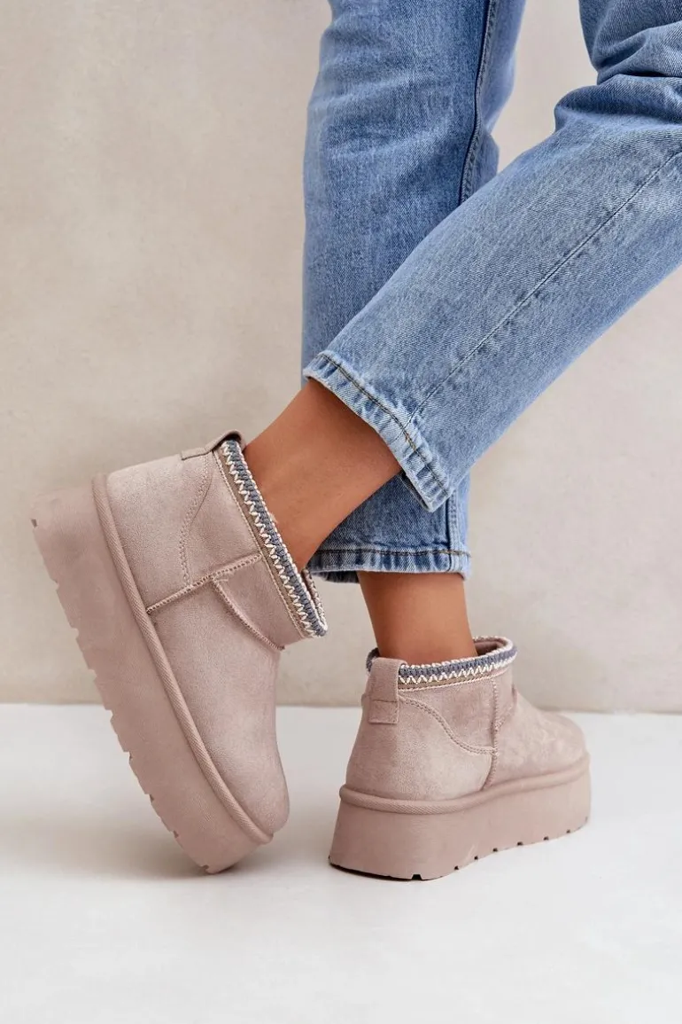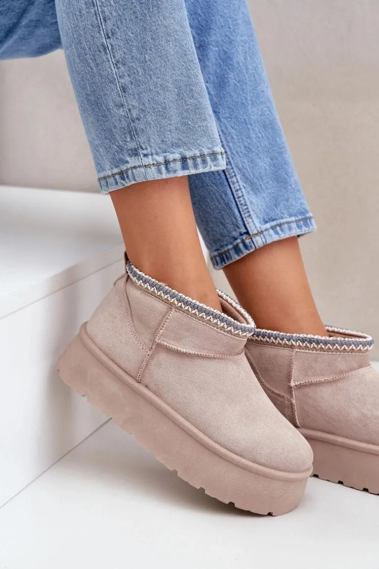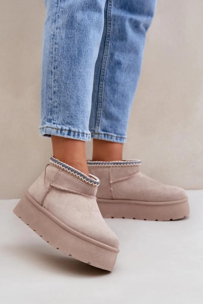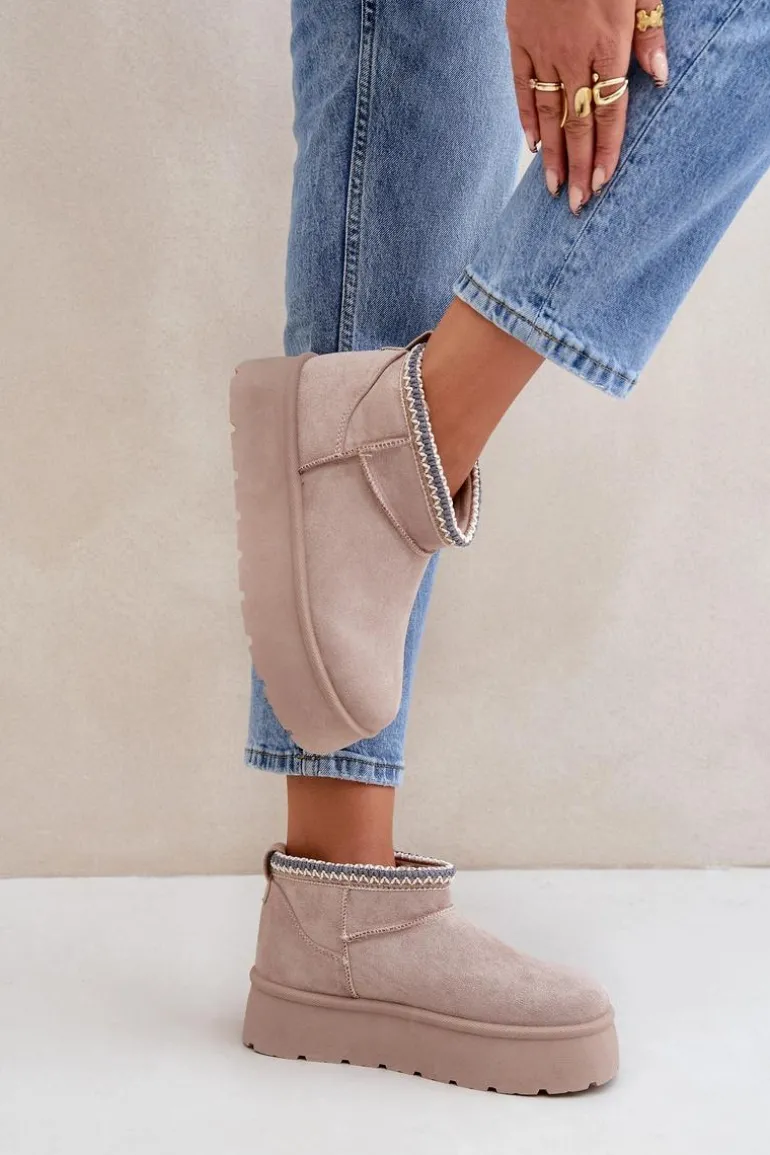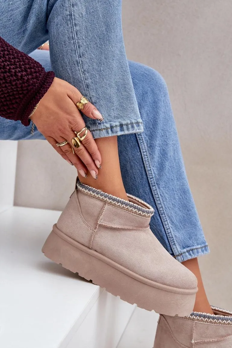 Śniegowce Na Platformie Z Ozdobnym Haftem Jasnobeżowe Heslania