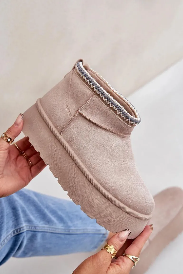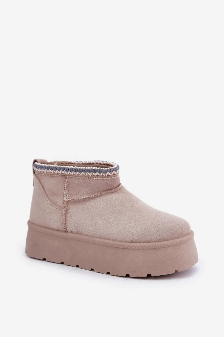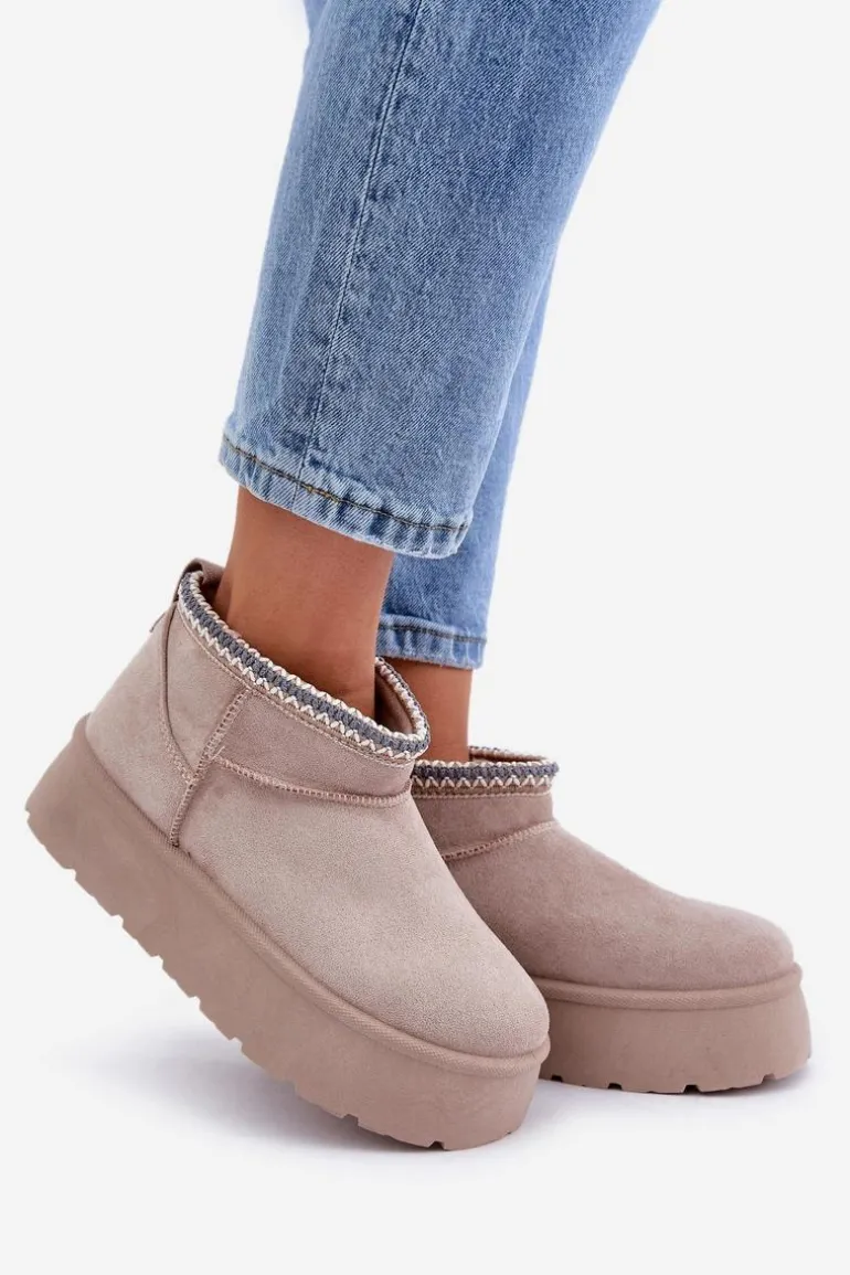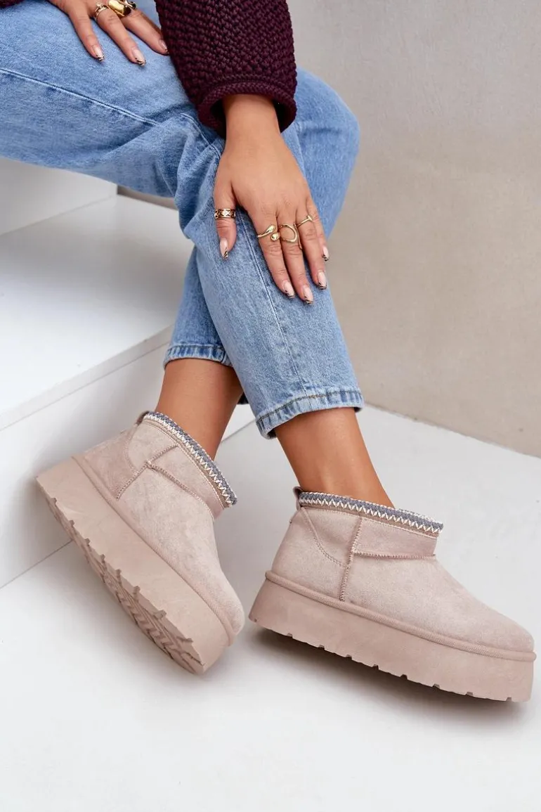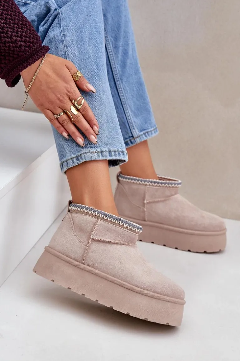 Śniegowce Na Platformie Z Ozdobnym Haftem Jasnobeżowe Heslania