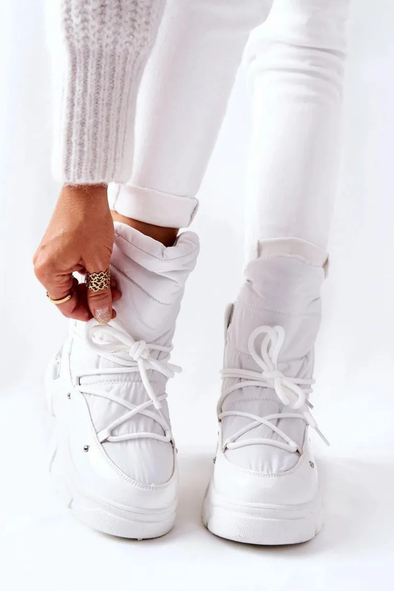 Szukasz ciepłych i wygodnych śniegowców? To dobrze trafiłaś! Śniegowce ocieplane przyjemnym w dotyku futerkiem. Zewnętrzna część buta została wykonana z materiału tekstylnego oraz lakierowanej eko skóry. Solidne sznurowanie zapewni idealne dopasowanie się buta do nogi. Wysoka platforma. Z tyłu podeszwy znajduje się ozdobny element. Przy wyborze rozmiaru prosimy kierować tabelą rozmiarów.