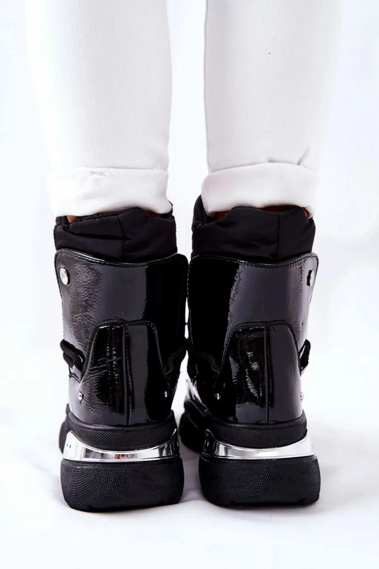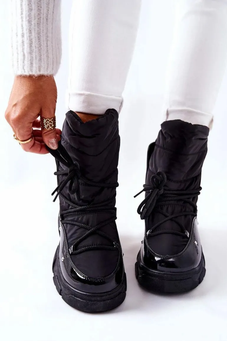 Szukasz ciepłych i wygodnych śniegowców? To dobrze trafiłaś! Śniegowce ocieplane przyjemnym w dotyku futerkiem. Zewnętrzna część buta została wykonana z materiału tekstylnego oraz lakierowanej eko skóry. Solidne sznurowanie zapewni idealne dopasowanie się buta do nogi. Wysoka platforma. Z tyłu podeszwy znajduje się ozdobny element. Przy wyborze rozmiaru prosimy kierować tabelą rozmiarów.