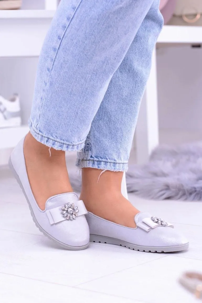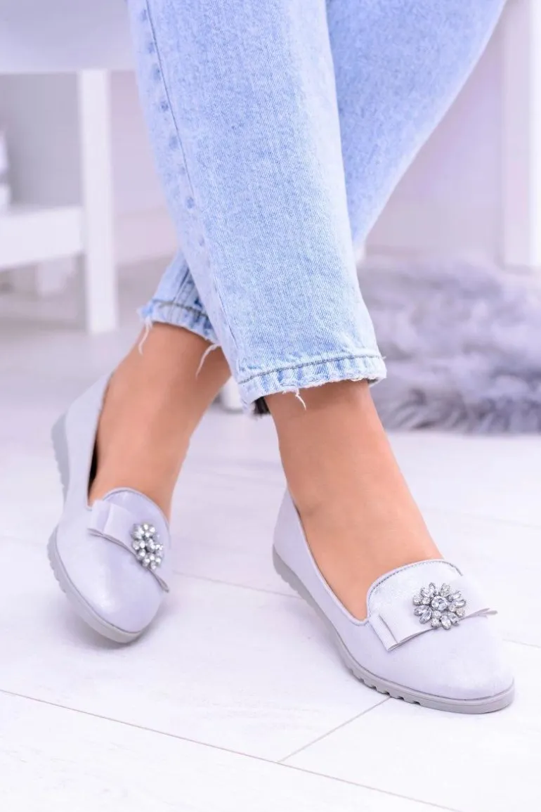 Srebrne Damskie Baleriny Lordsy Cyrkonie Rumi