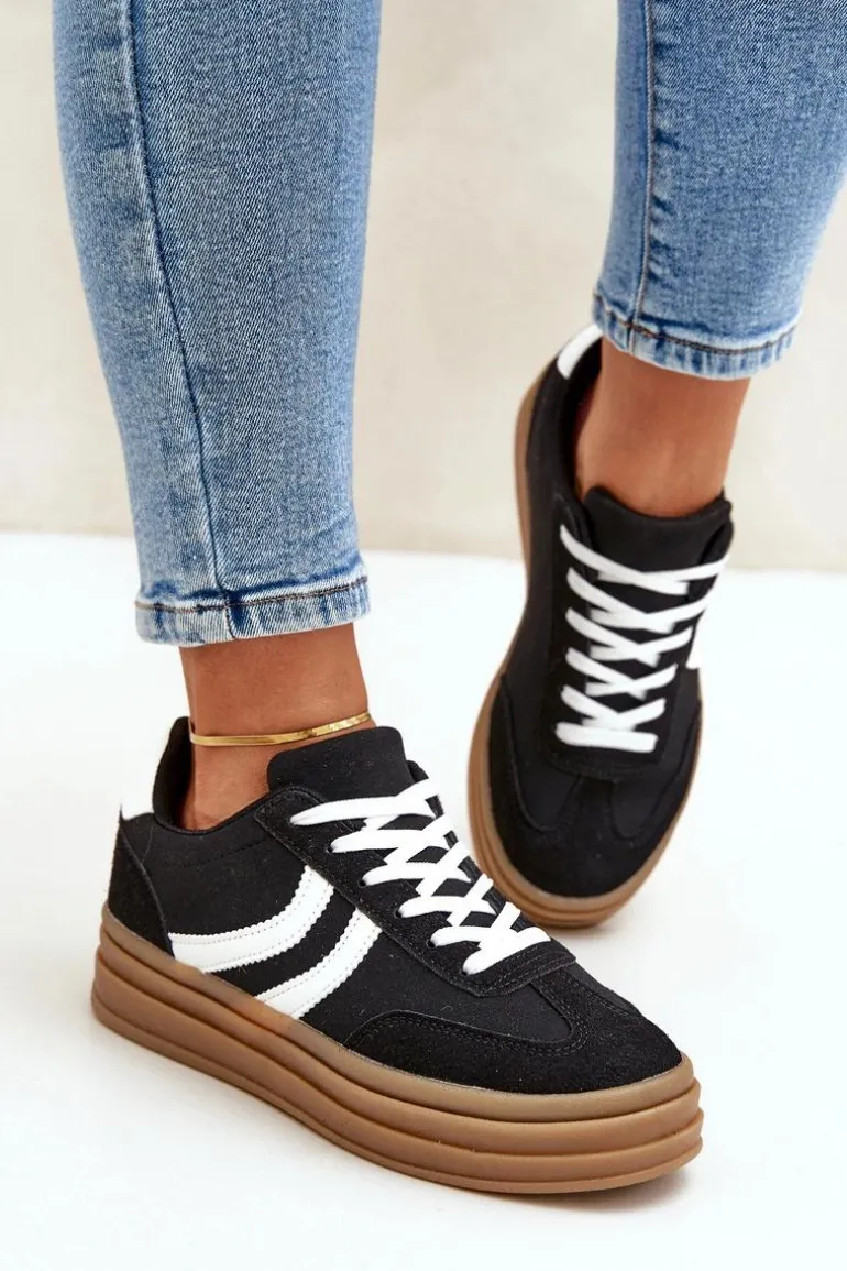 Stylowe sneakersy wykonane z miękkiego eko zamszu to propozycja dla kobiet ceniących modny wygląd i wygodę. Osadzone na modnej platformie, która subtelnie unosi sylwetkę, zapewniają jednocześnie stabilność i komfort noszenia. Zaokrąglone noski dodają klasycznego charakteru, pasując do różnych stylizacji. Wkładka z pianki zapewnia wygodę przez cały dzień. Idealny wybór zarówno na co dzień, jak i na mniej formalne okazje. Przy wyborze rozmiaru prosimy kierować tabelą rozmiarów.