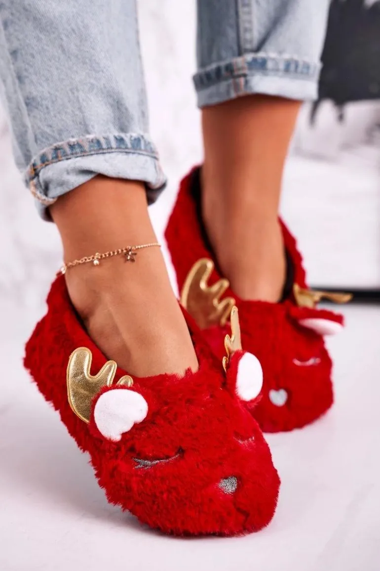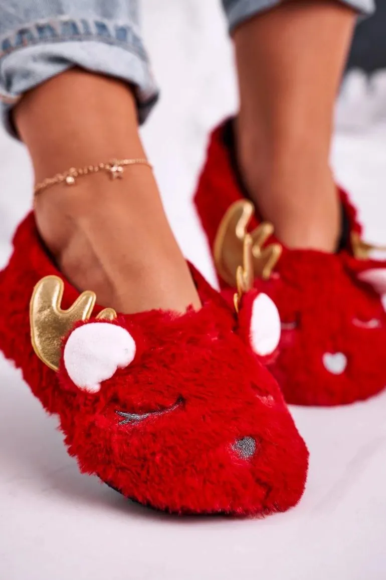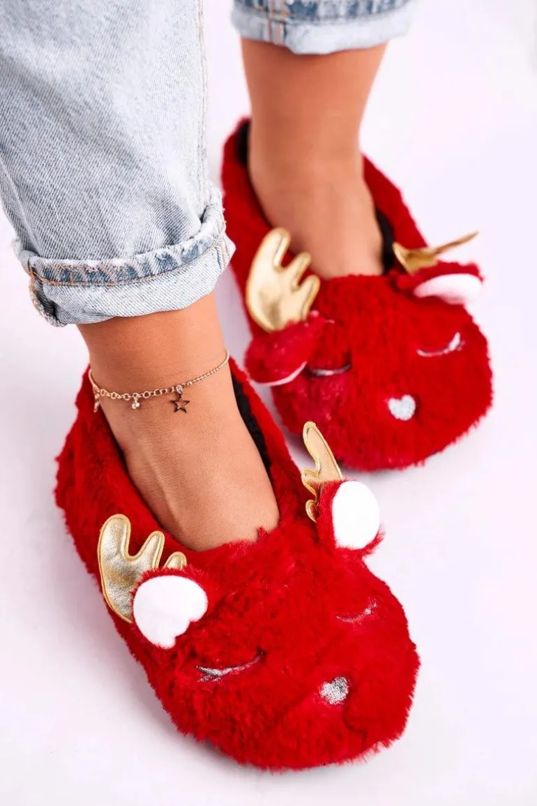 Świąteczne Ocieplane Futrzane Papcie Czerwone Jingle Bells