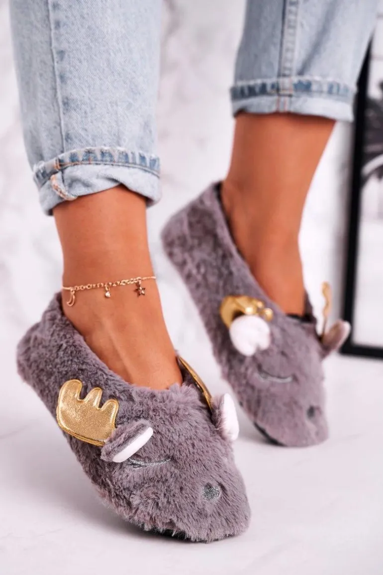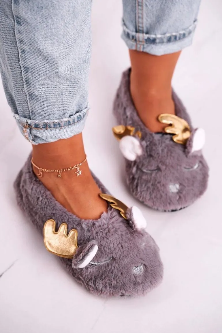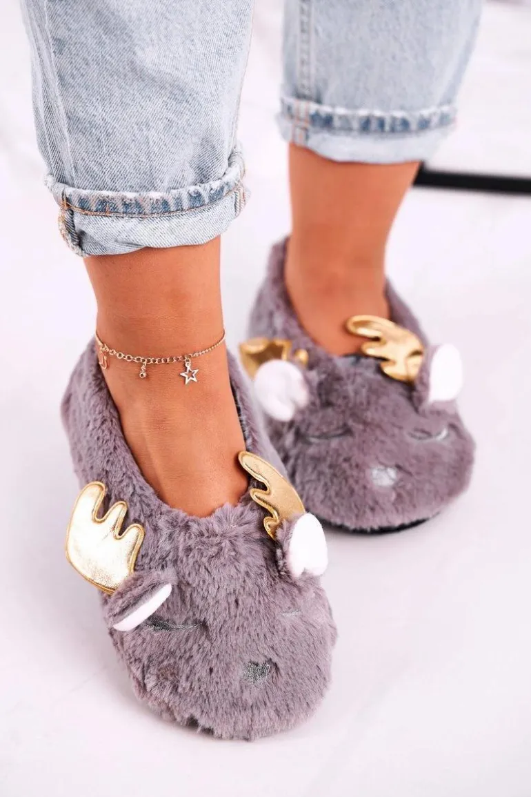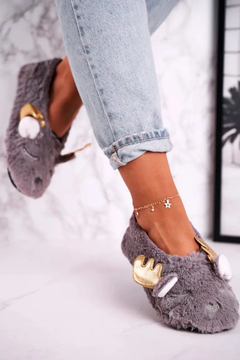 Świąteczne Ocieplane Futrzane Papcie Szare Jingle Bells
