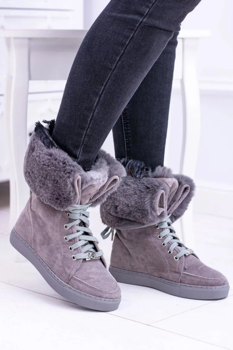 Szare Zamszowe Botki LU BOO Timberki z Futrem