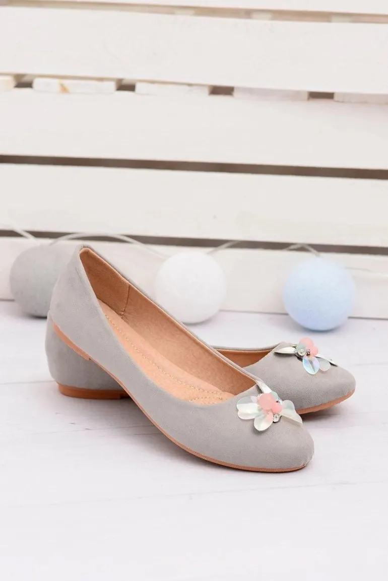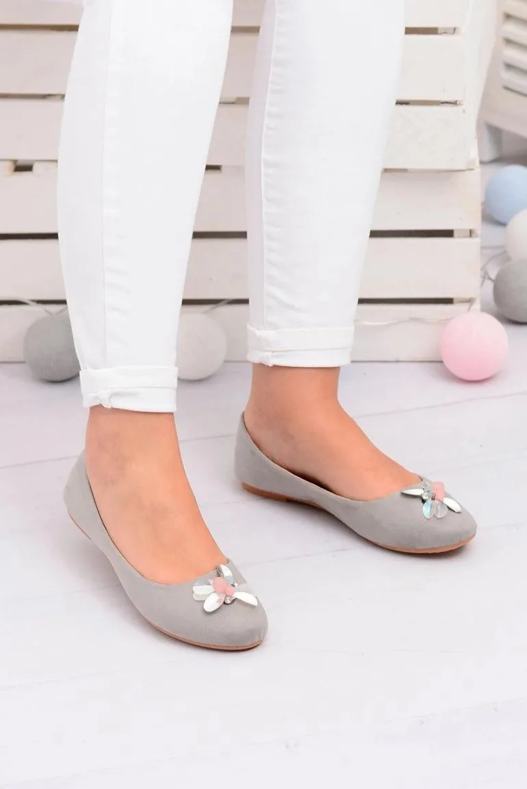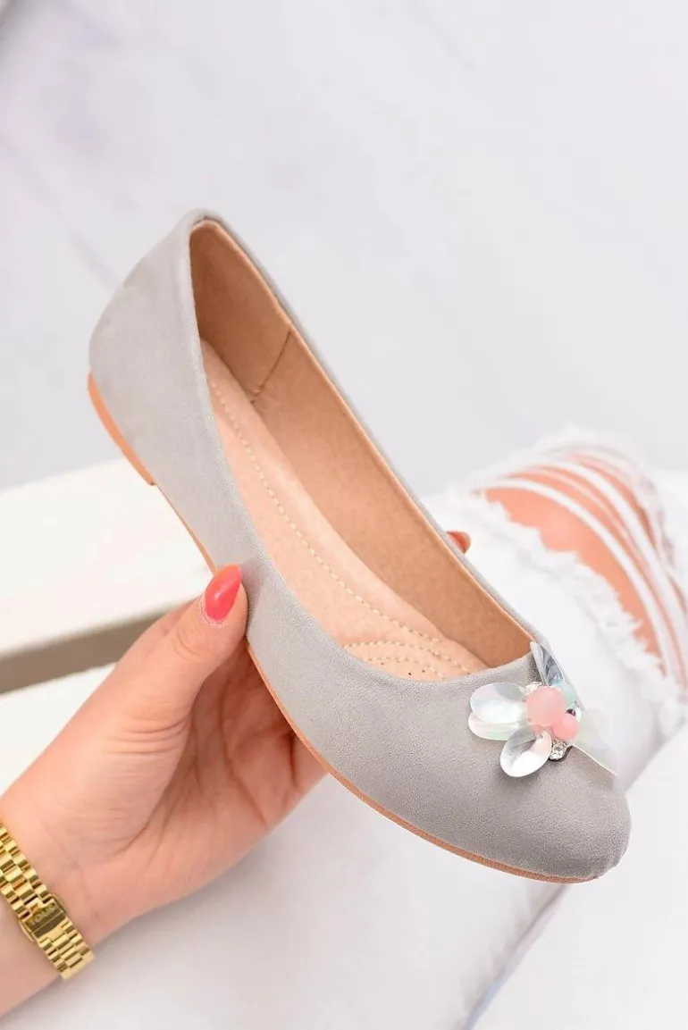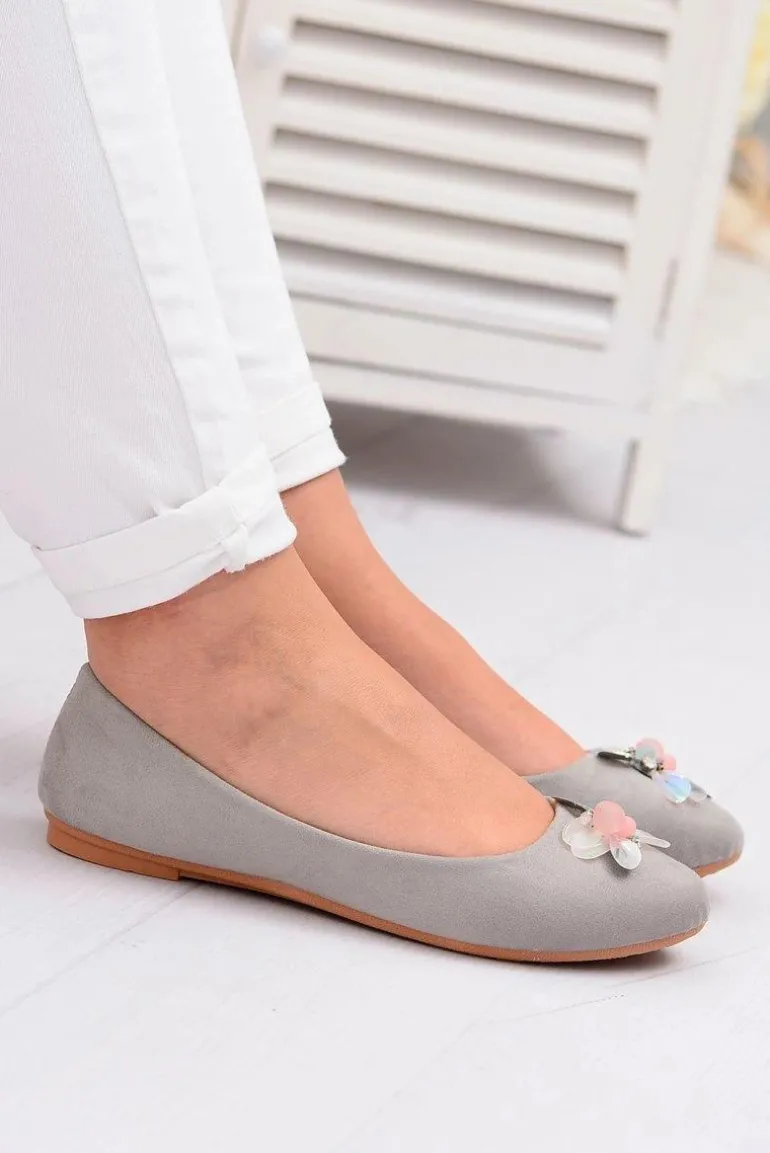 Szare Zamszowe Damskie Balerinki Blume