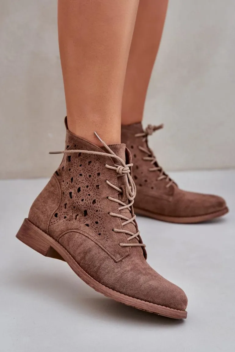 Botki damskie na płaskim obcasie od marki S.Barski to elegancka propozycja, która łączy wygodę z nowoczesnym stylem. Wykonane z wysokiej jakości eko zamszu. Sznurowane oraz zapinane na zamek, co pozwala na łatwe zakładanie i idealne dopasowanie do stopy. Ażurowy wzorek na cholewce nadaje subtelnego charakteru, wprowadzając świeży i kobiecy akcent. Dzięki płaskiemu obcasowi te botki są wygodne do noszenia przez cały dzień, doskonale sprawdzając się w codziennych stylizacjach. Idealne na wiosnę lub jesień, stanowią świetne uzupełnienie casualowych oraz eleganckich outfitów, łącząc funkcjonalność z modnym wyglądem. Przy wyborze rozmiaru prosimy sugerować się poniższą tabelą rozmiarów.