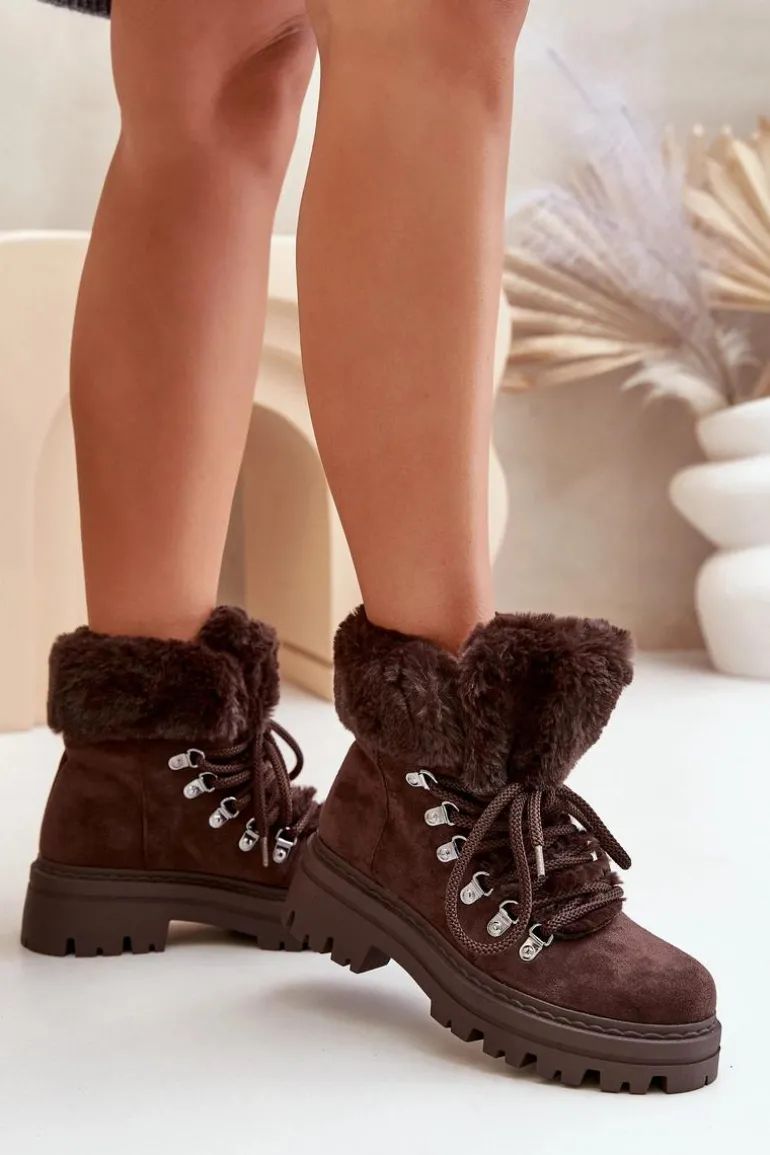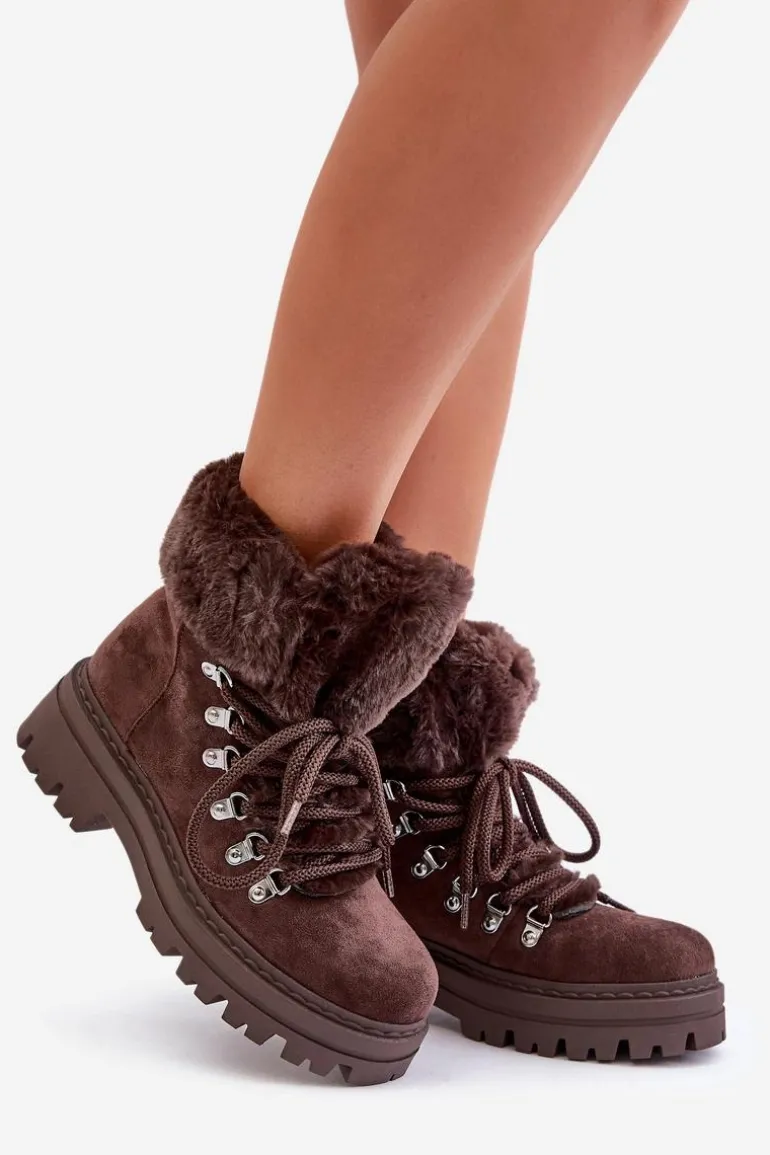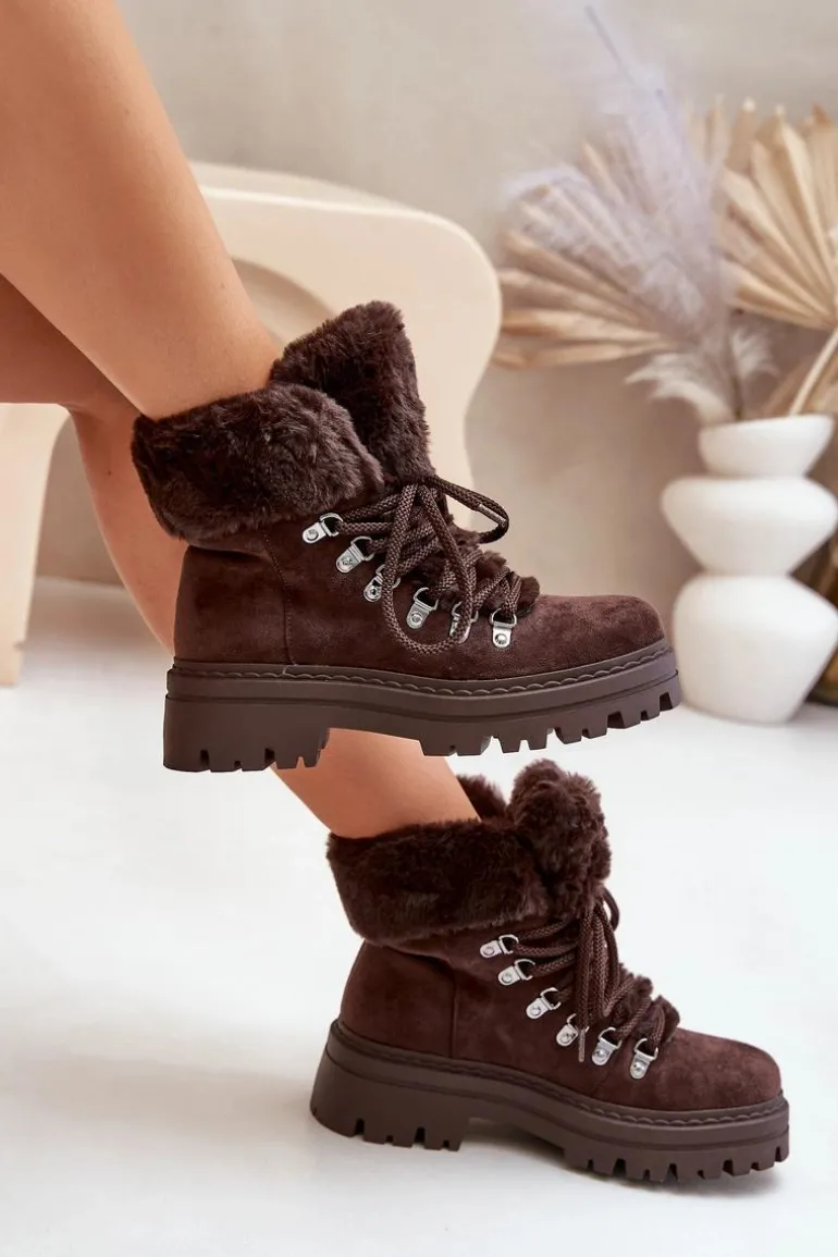 Sznurowane Trapery Damskie Z Futerkiem Ciemnobrązowe Vaminia