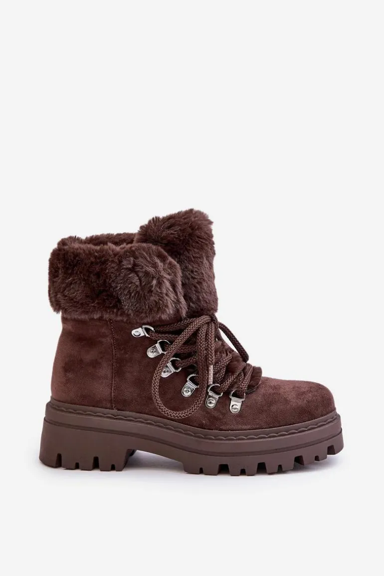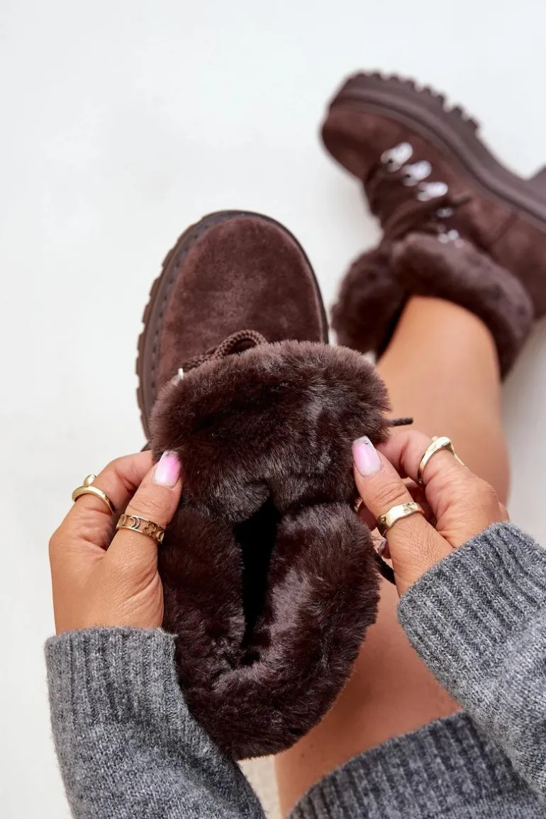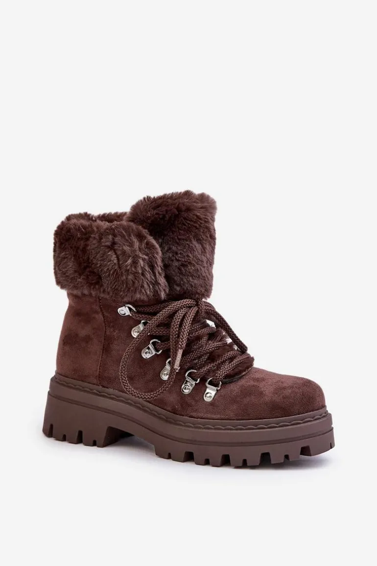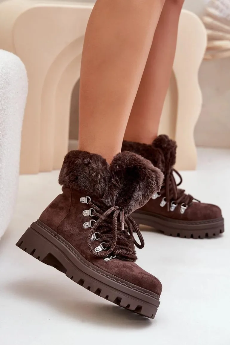 Sznurowane Trapery Damskie Z Futerkiem Ciemnobrązowe Vaminia