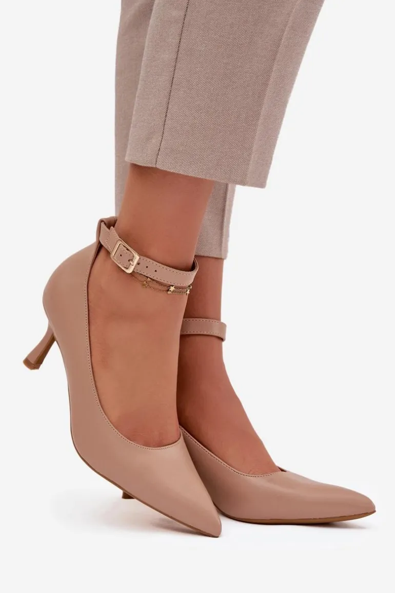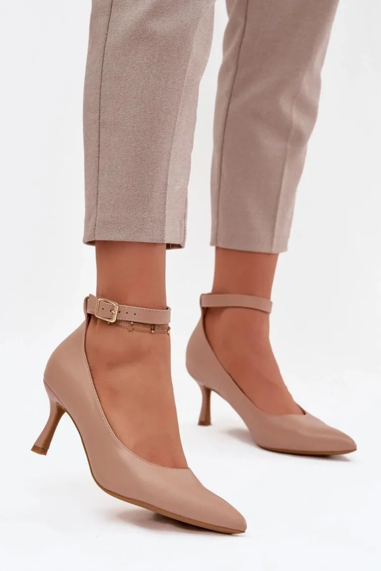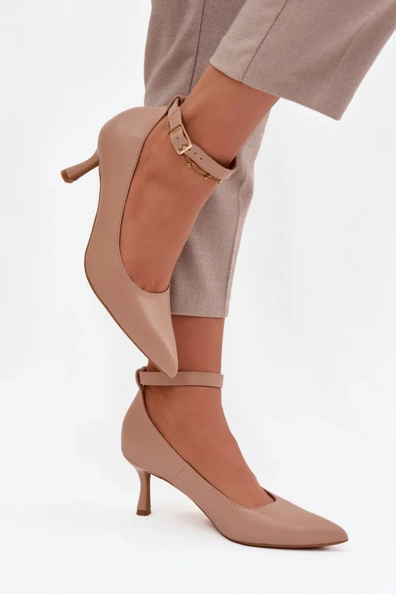 Szpilki Czółenka Z Paskiem Ciemnobeżowe Perrine