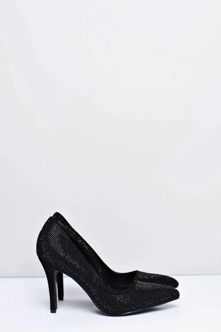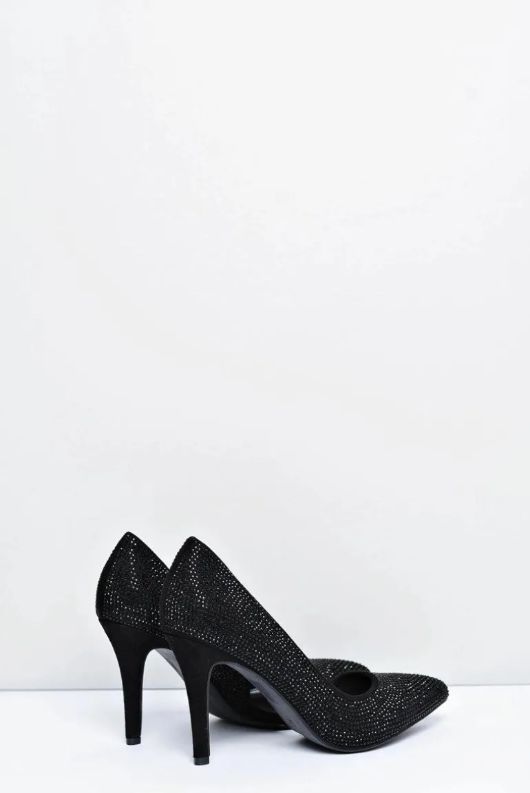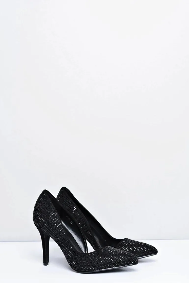 Szpilki Damskie Czarne Zamszowe Cyrkonie Asymetryczne Santee