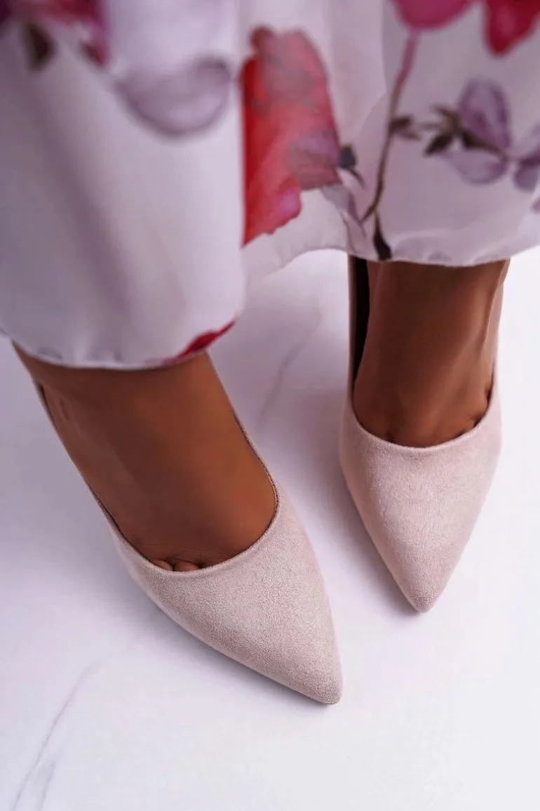 Szpilki Damskie Zamszowe Beżowe Yanna