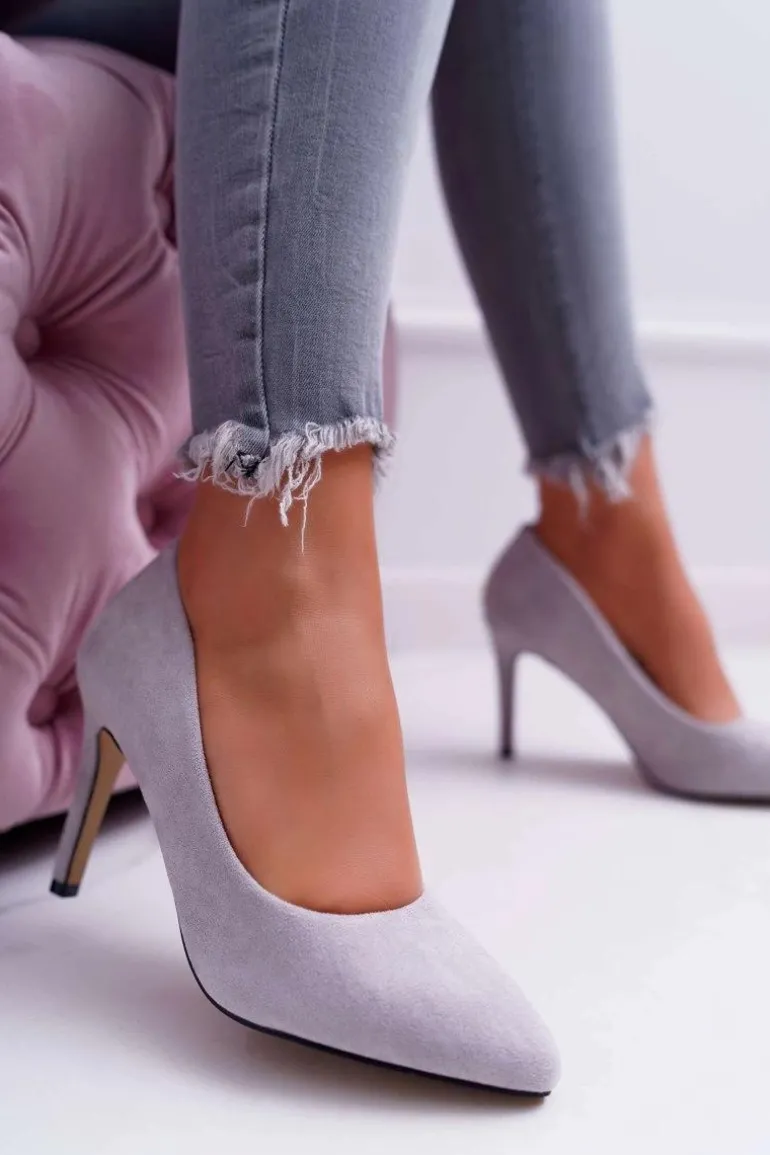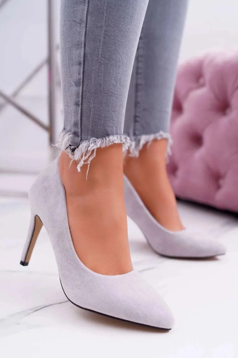 Szpilki Damskie Zamszowe W Szpic Szare Kiss Me