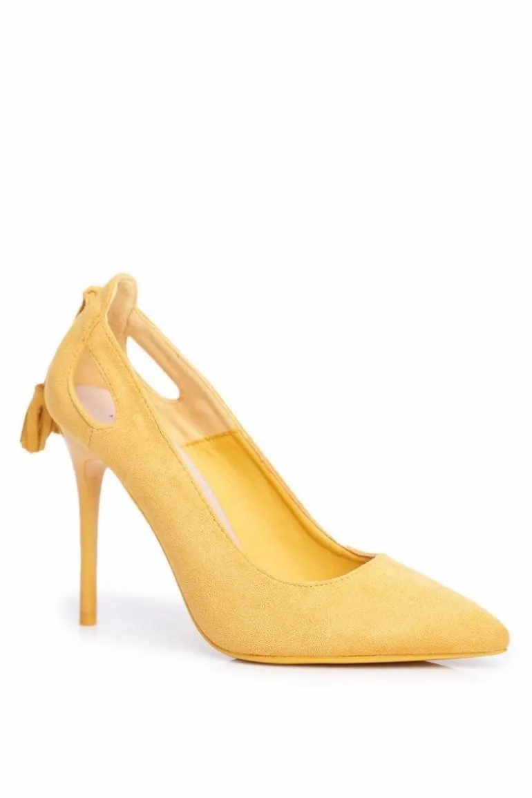 Szpilki Damskie Zamszowe W Szpic Żółte Leven