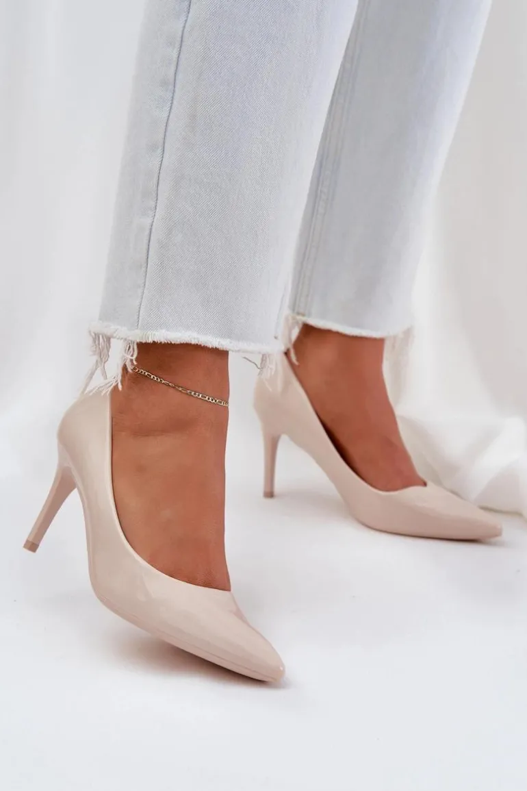 Szpilki Lakierowane Ze Szpiczastymi Noskami Beżowe Laniffia