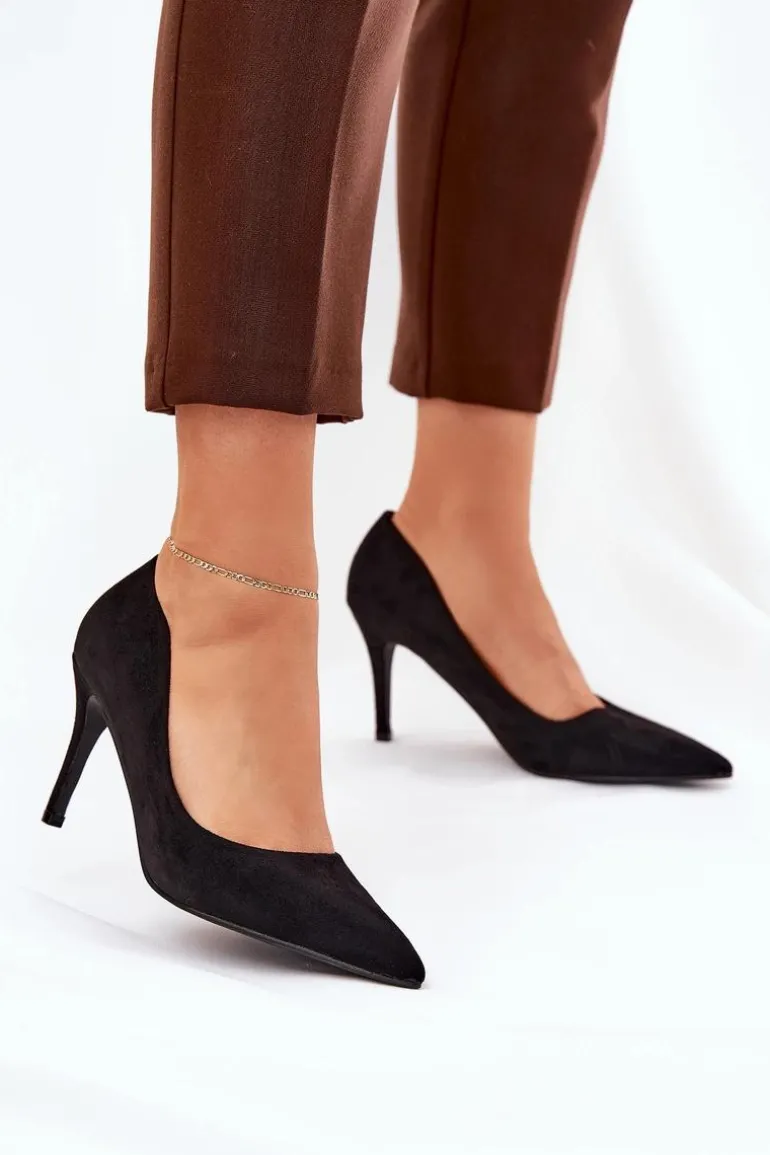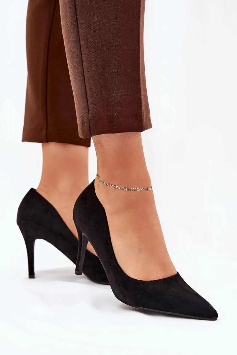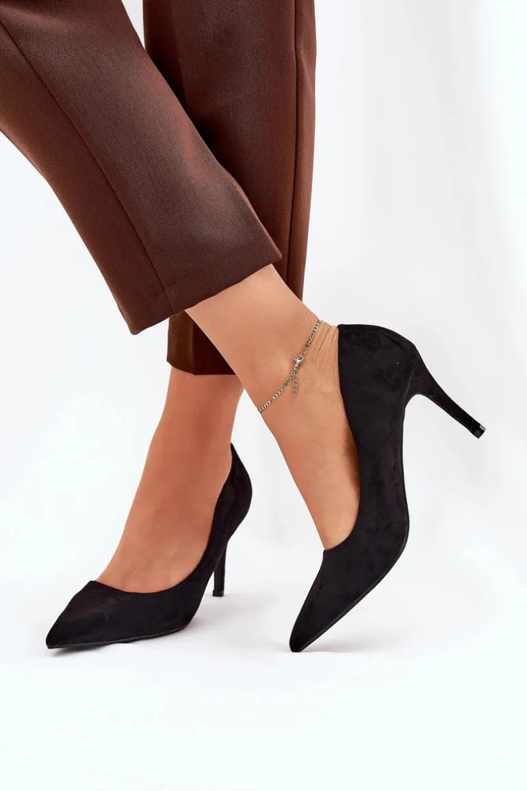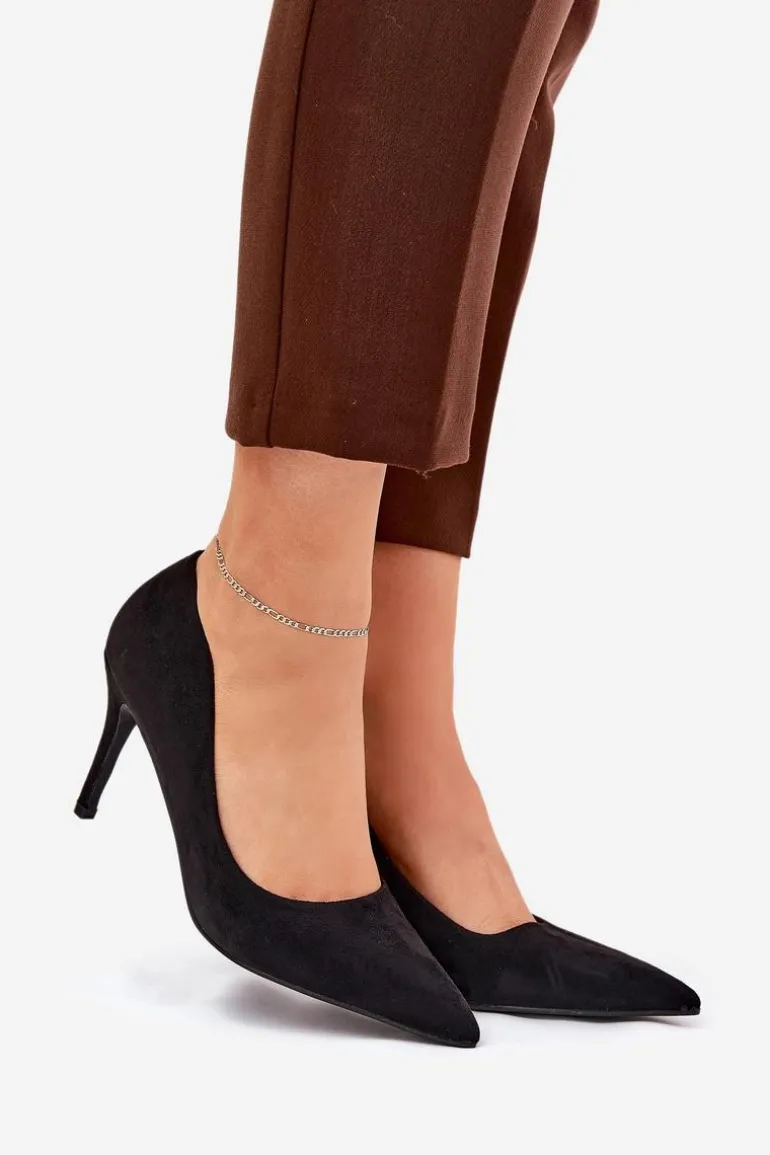 Eko zamszowe szpilki to klasyka, która wzbogaci każdą kreację o elegancję. Szpiczaste noski nadają im wyrafinowany wygląd, a ich gładka, jednolita cholewka czyni je ponadczasowymi i uniwersalnymi. Miękka wkładka zapewni komfort przez cały dzień. Te szpilki są idealnym wyborem na wieczorowe wyjścia, spotkania biznesowe oraz specjalne okazje, łącząc elegancję z wygodą. Przy wyborze rozmiaru prosimy sugerować się tabelą rozmiarów.