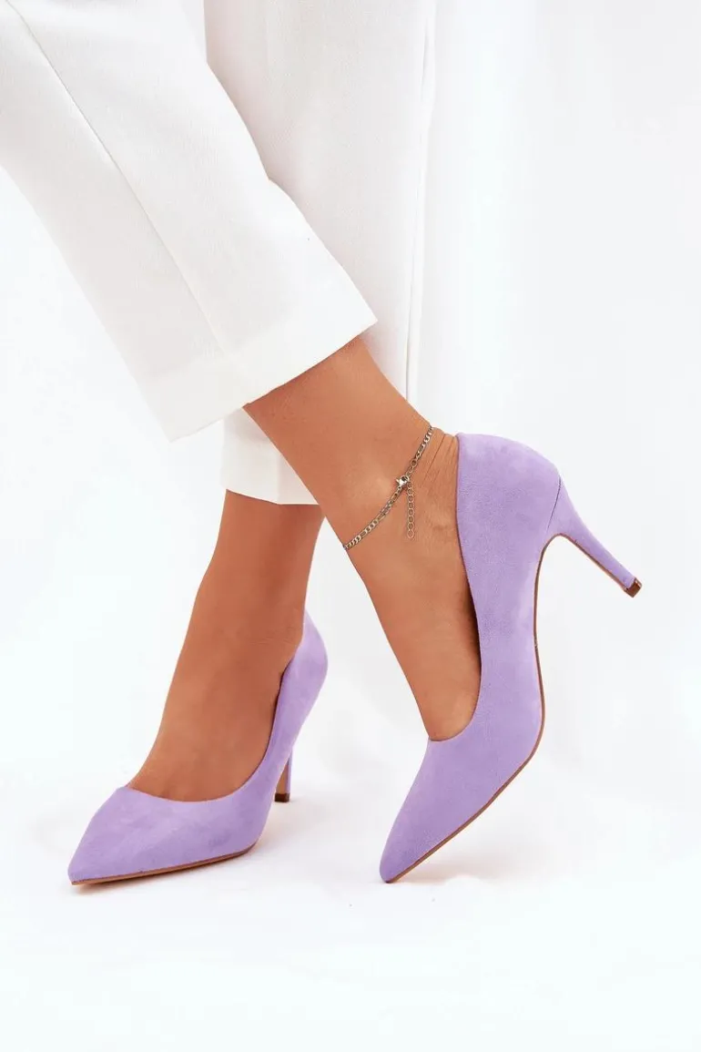Eko zamszowe szpilki to klasyka, która wzbogaci każdą kreację o elegancję. Szpiczaste noski nadają im wyrafinowany wygląd, a ich gładka, jednolita cholewka czyni je ponadczasowymi i uniwersalnymi. Miękka wkładka zapewni komfort przez cały dzień. Te szpilki są idealnym wyborem na wieczorowe wyjścia, spotkania biznesowe oraz specjalne okazje, łącząc elegancję z wygodą. Przy wyborze rozmiaru prosimy sugerować się tabelą rozmiarów.