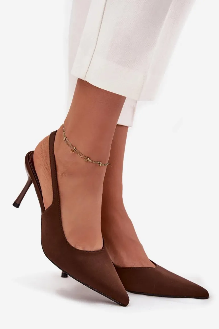 Stylowe szpilki damskie wykonane z wysokiej jakości materiału tekstylnego to kwintesencja kobiecej elegancji. Model z odkrytą piętą subtelnie eksponuje stopę, a szpiczasty nosek dodaje klasy i lekkości. Idealne na wyjątkowe okazje – świetnie komponują się z sukienkami koktajlowymi, eleganckimi spodniami czy spódnicami midi. Przy wyborze rozmiaru prosimy sugerować się tabelą rozmiarów.
