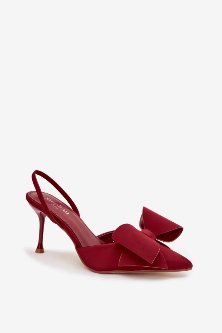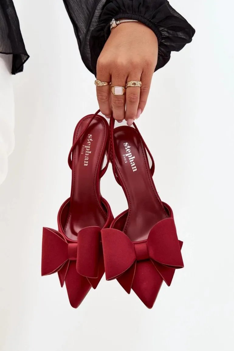 Eleganckie szpilki damskie z odkrytą piętą stanowią doskonały wybór dla kobiet, które pragną połączyć styl z komfortem. Wykonane z materiału tekstylnego. Szpiczaste noski podkreślają ich delikatną elegancję, a kokardka umieszczona z przodu dodaje im dodatkowego wdzięku. Świetnie sprawdzą się na różnorodne okazje, od oficjalnych spotkań po wieczorne wyjścia. Przy wyborze rozmiaru prosimy sugerować się tabelą rozmiarów.