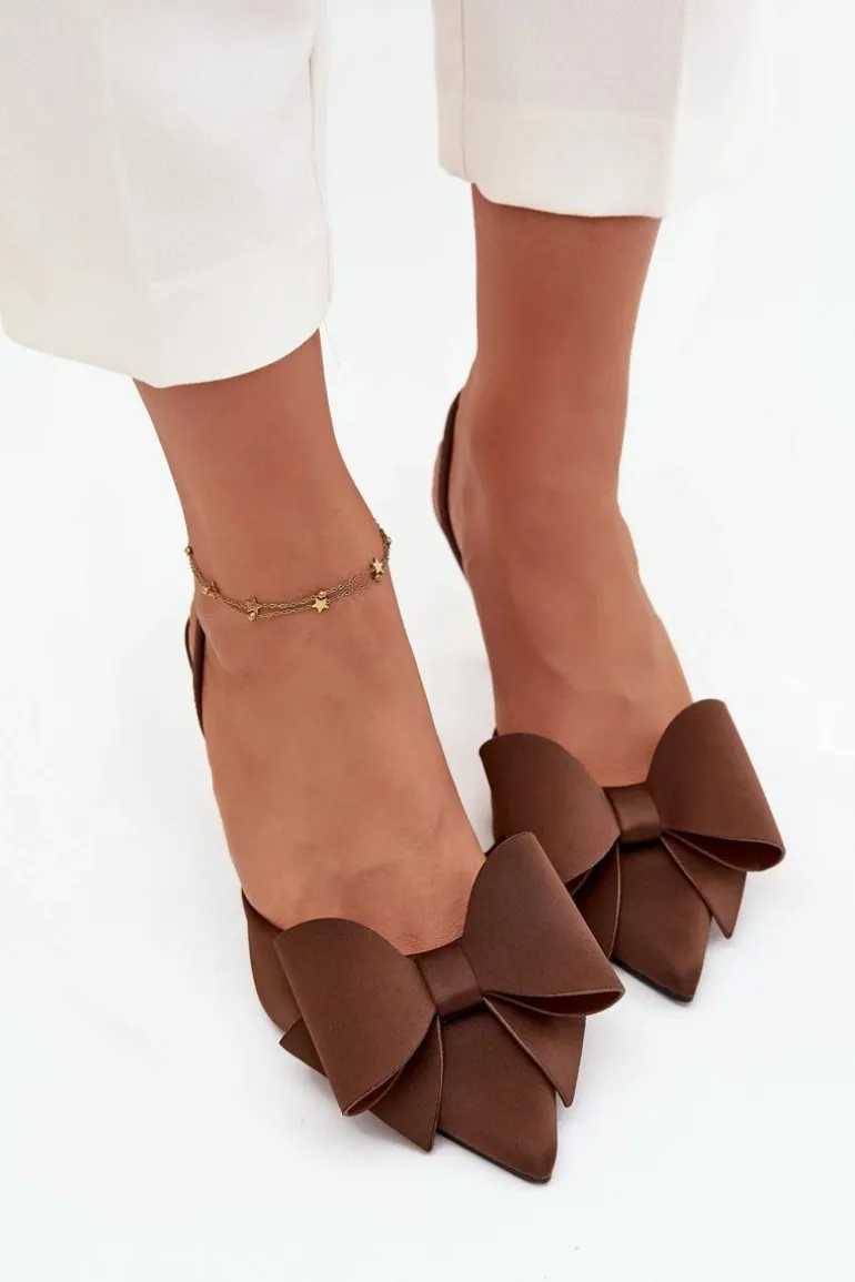 Eleganckie szpilki damskie z odkrytą piętą stanowią doskonały wybór dla kobiet, które pragną połączyć styl z komfortem. Wykonane z materiału tekstylnego. Szpiczaste noski podkreślają ich delikatną elegancję, a kokardka umieszczona z przodu dodaje im dodatkowego wdzięku. Świetnie sprawdzą się na różnorodne okazje, od oficjalnych spotkań po wieczorne wyjścia. Przy wyborze rozmiaru prosimy sugerować się tabelą rozmiarów.