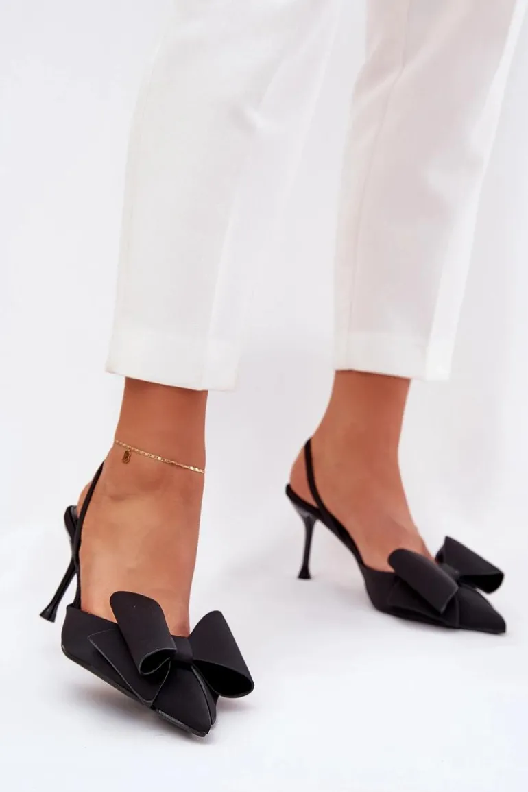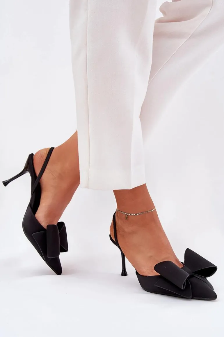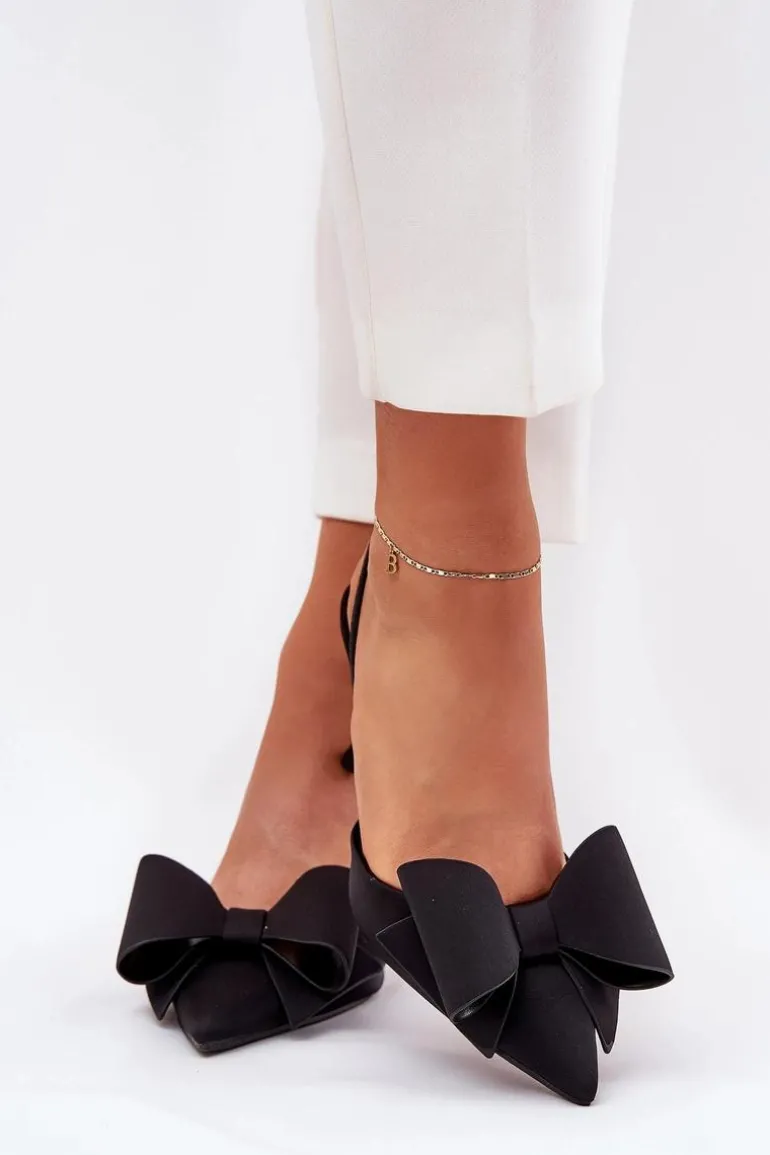 Szpilki Z Odkrytymi Piętami I Kokardką Czarne Eklevia