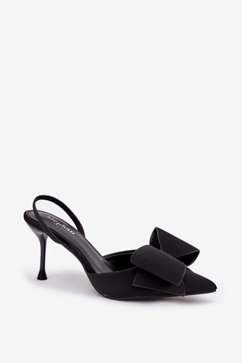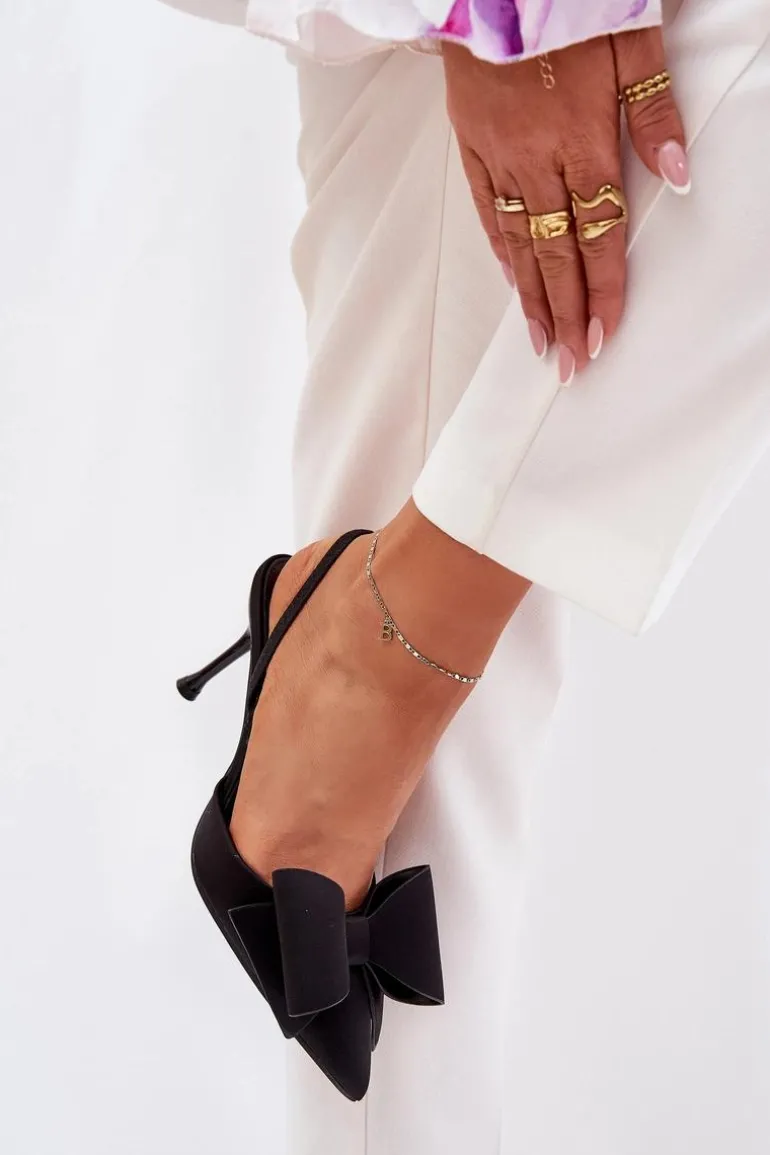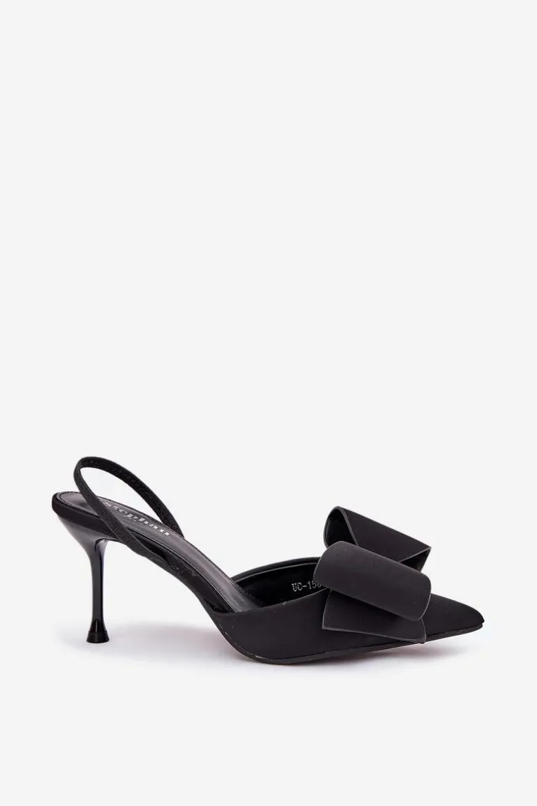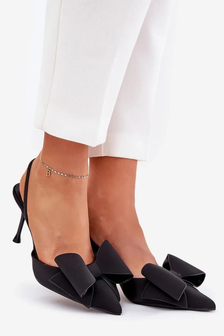 Szpilki Z Odkrytymi Piętami I Kokardką Czarne Eklevia