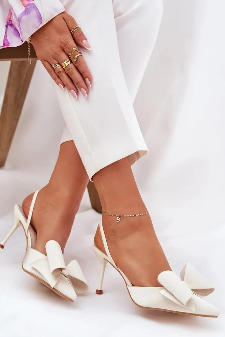 Szpilki Z Odkrytymi Piętami I Kokardką Ecru Eklevia