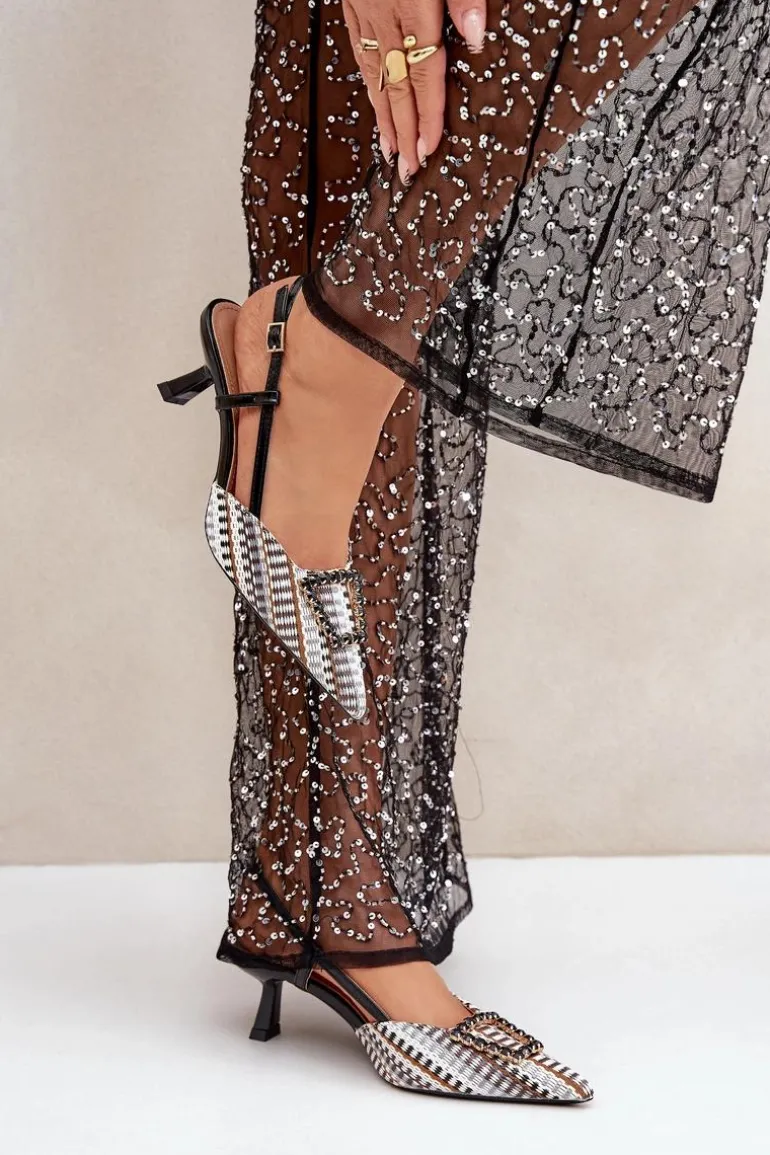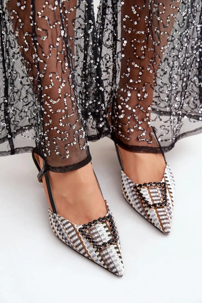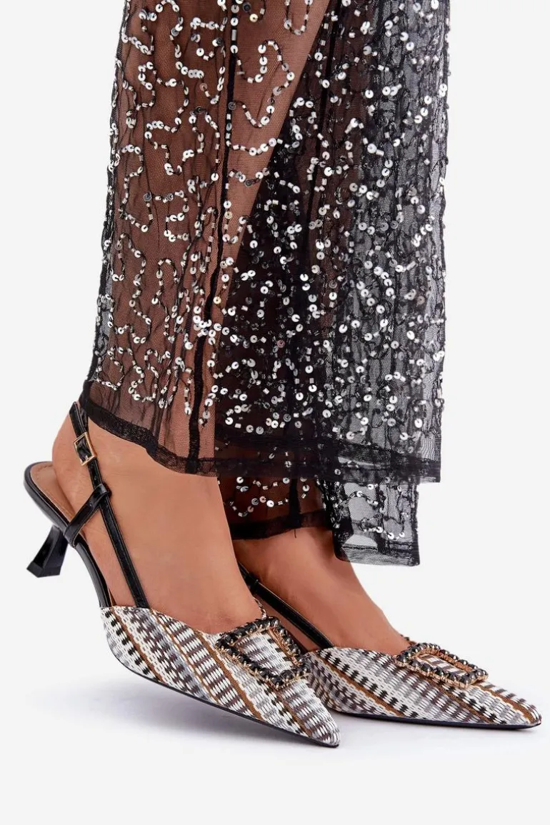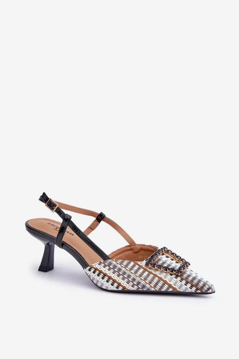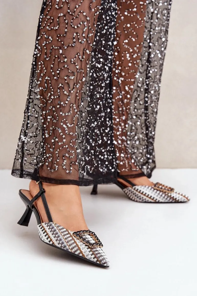Szpilki Z Ozdobą I Odkrytą Piętą Czarne Teminora