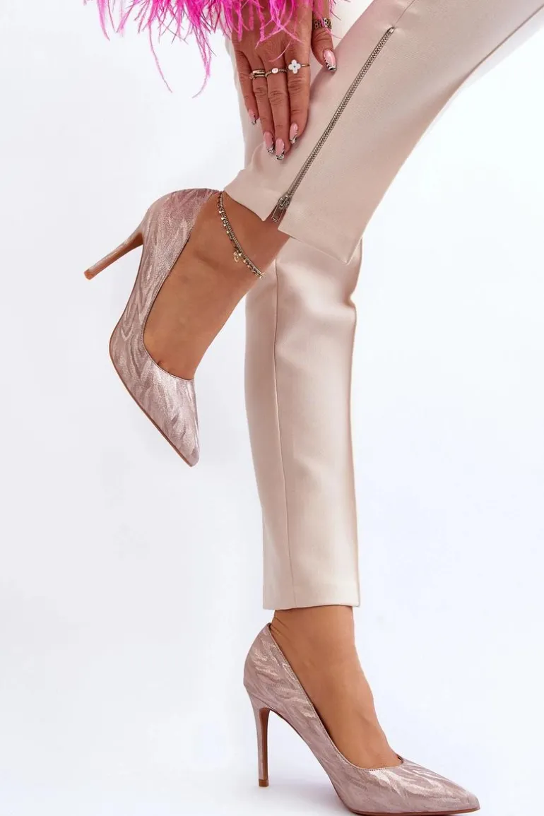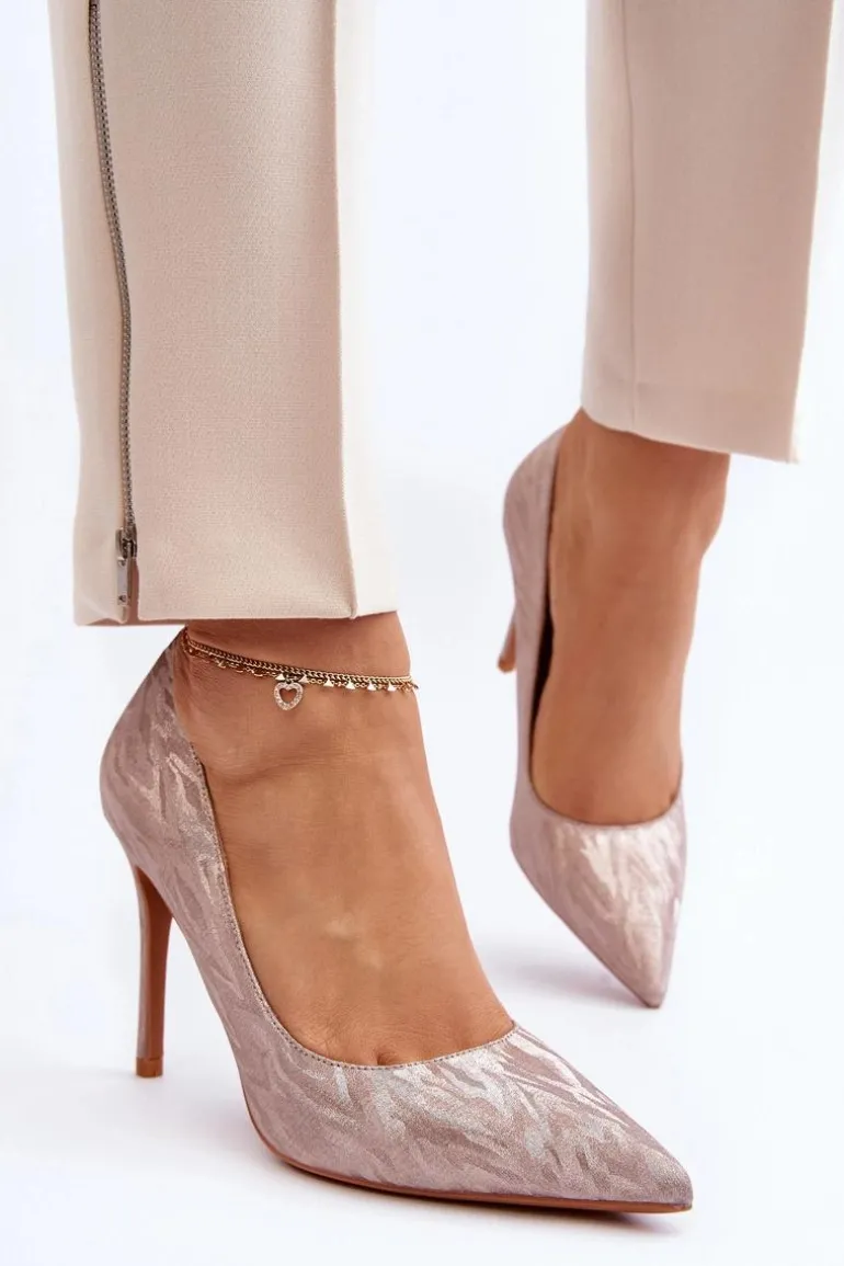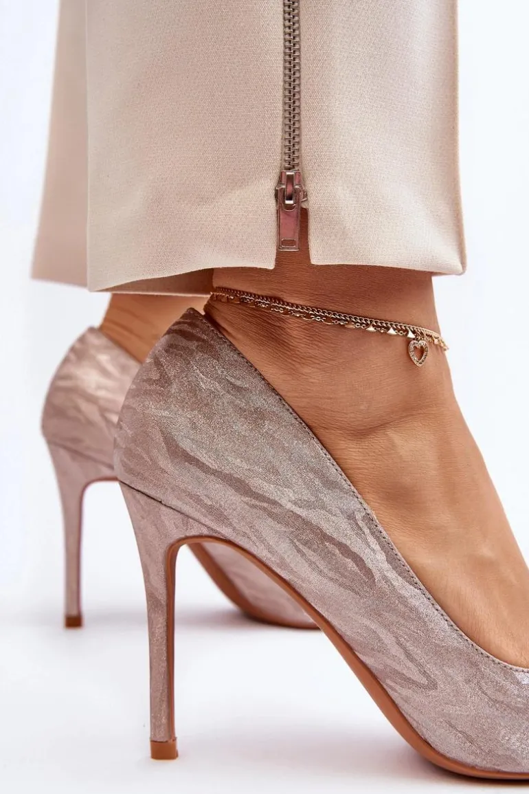 Szpilki Zdobione Brokatem Champagne Klonisa