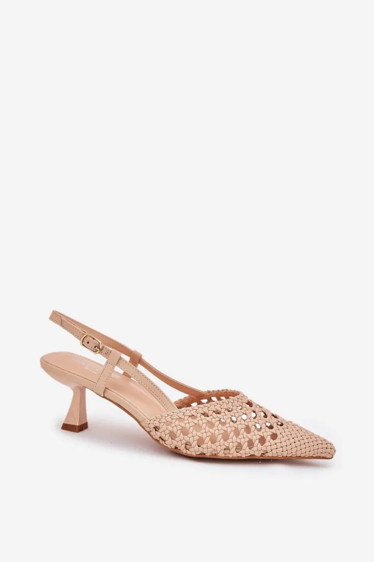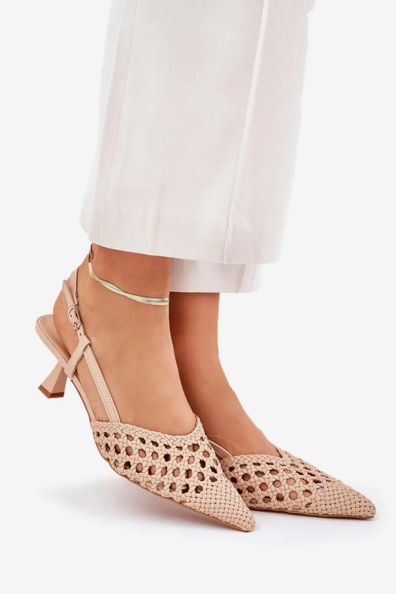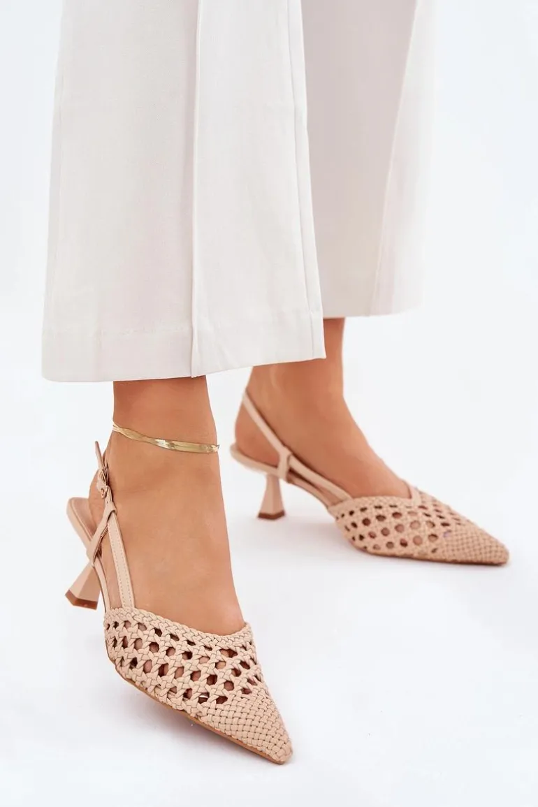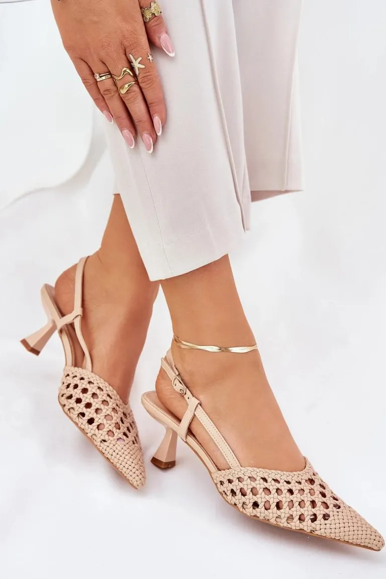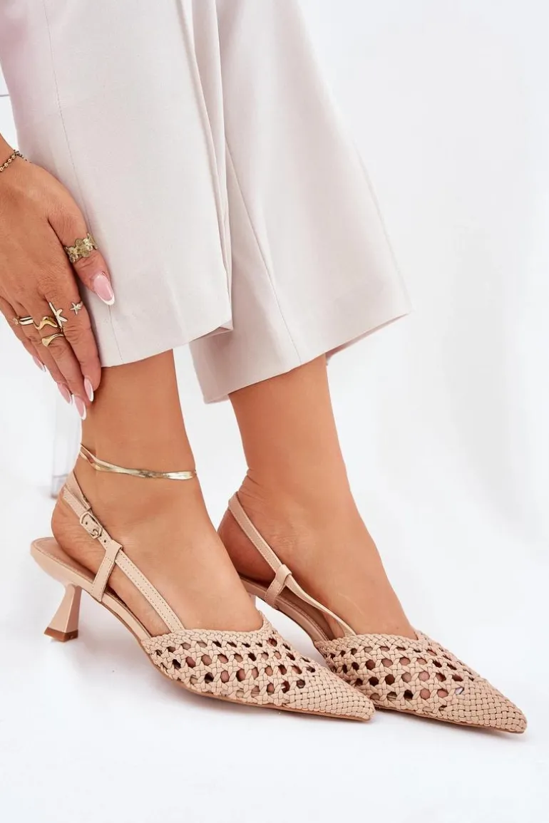 Szpilki damskie z odkrytą piętą, które zachwycają swoim wyglądem. Model zapinany na sprzączkę, co zapewnia idealne dopasowanie do stopy. Te szpilki będą doskonałym wyborem na wieczorne wyjścia i uroczystości, wprowadzając do każdej stylizacji stylowy akcent. Przy wyborze rozmiaru prosimy sugerować się tabelą rozmiarów.