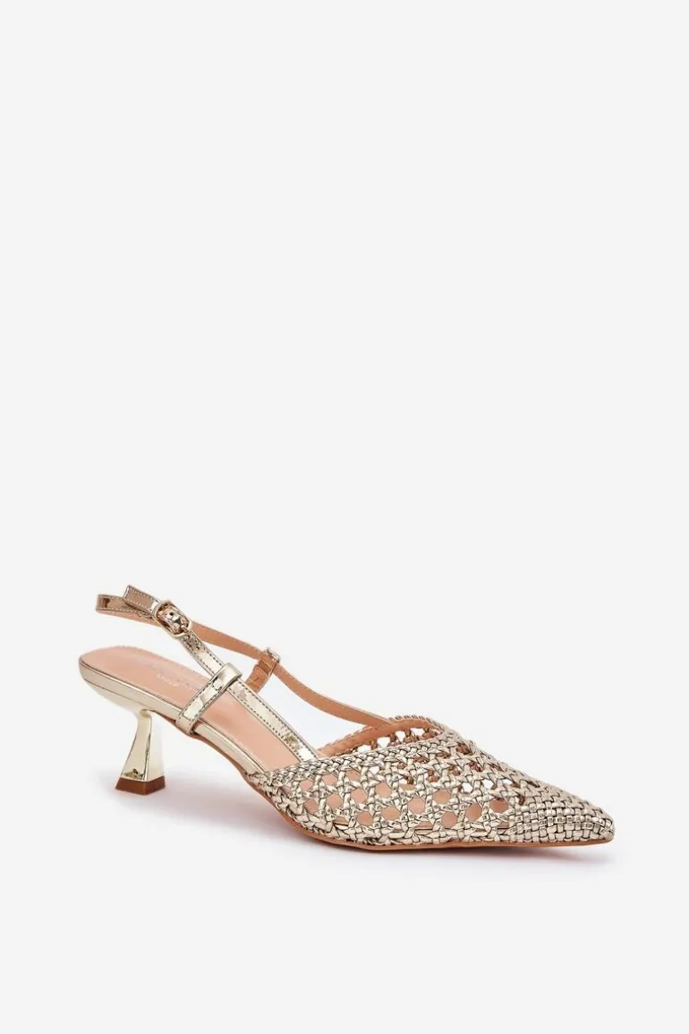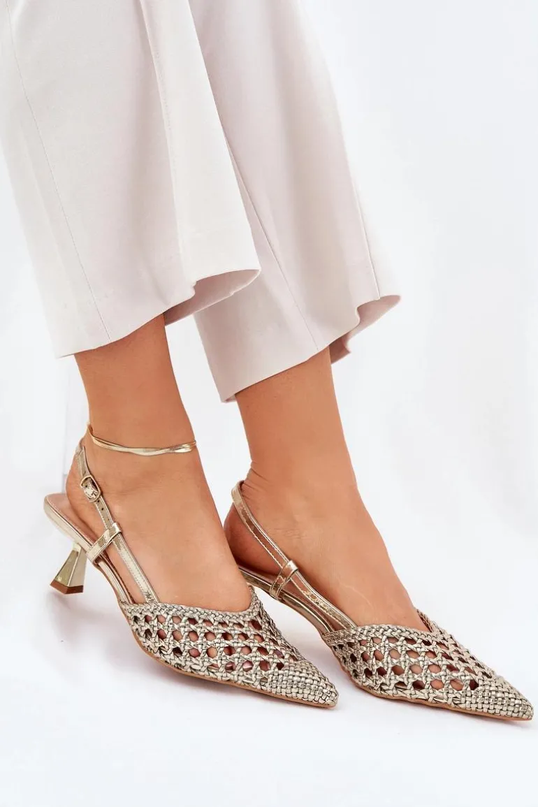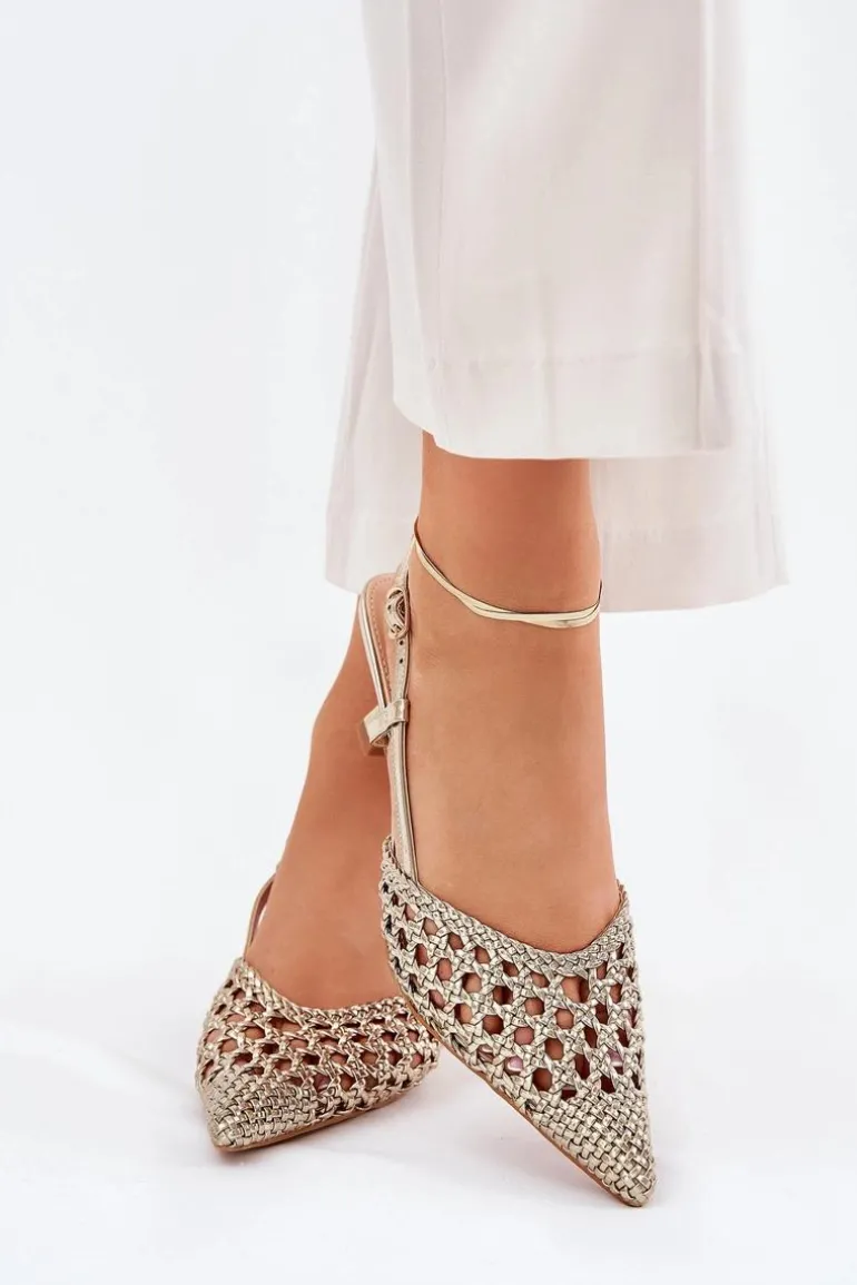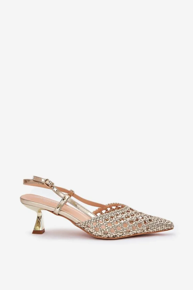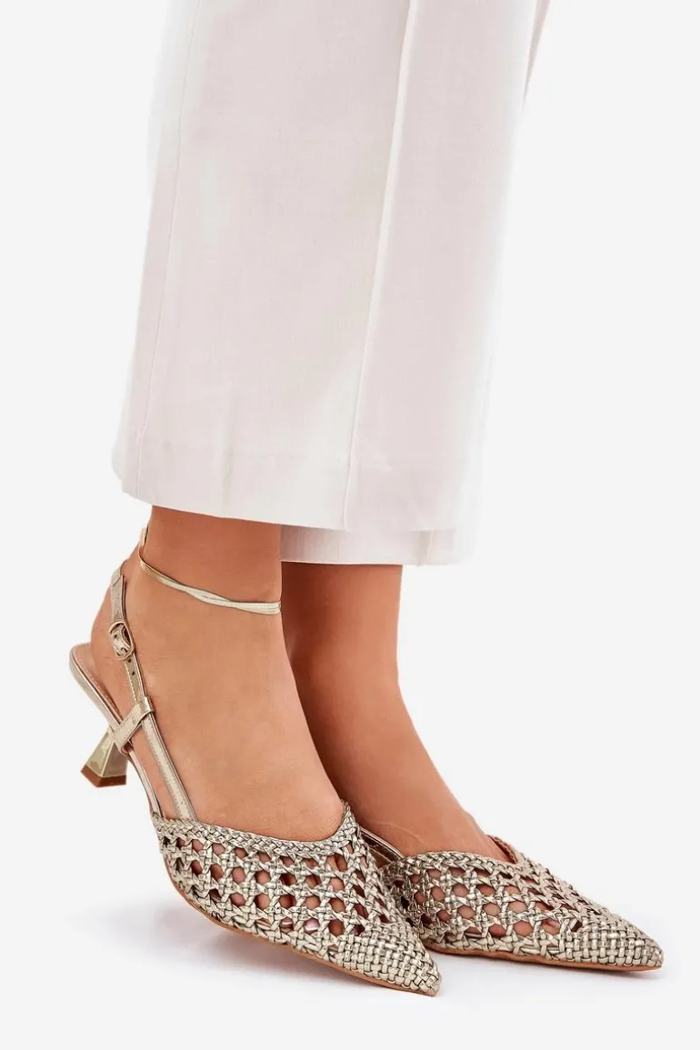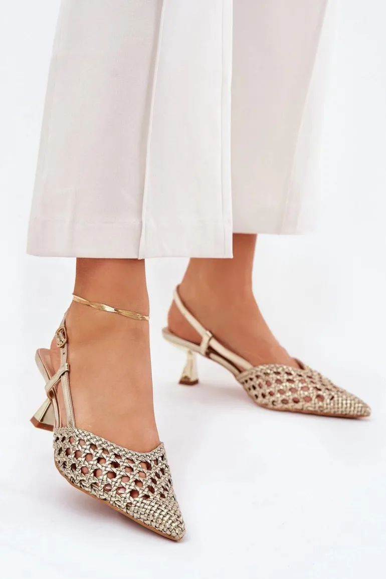 Szpilki damskie z odkrytą piętą, które zachwycają swoim wyglądem. Model zapinany na sprzączkę, co zapewnia idealne dopasowanie do stopy. Te szpilki będą doskonałym wyborem na wieczorne wyjścia i uroczystości, wprowadzając do każdej stylizacji stylowy akcent. Przy wyborze rozmiaru prosimy sugerować się tabelą rozmiarów.